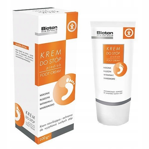 PRODIAB FOOT CREAM призначений для догляду за сухою та дуже сухою шкірою ніг, схильною до зроговіння та розтріскування. Його зволожуючий і захисний ефект є результатом унікальної комбінації сечовини, мітли, мікросрібла і вітаміну Е.