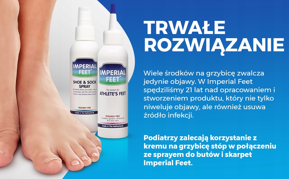 - Постійне рішення для захисту шкіри – разом із Imperial Feet ви назавжди попрощаєтеся з мікозом, мікозом та інфекціями нігтів, без ризику рецидиву.