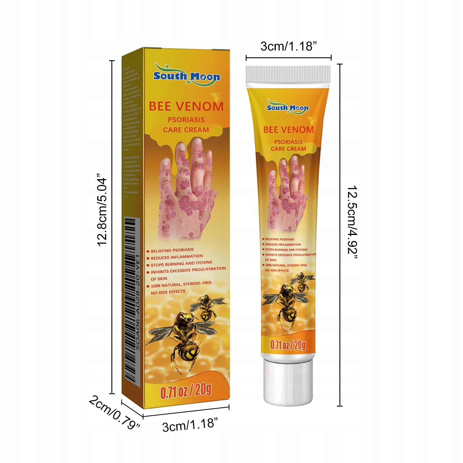 ⭐⭐⭐⭐⭐ Крем від псоріазу з бджолиною отрутою, що зменшує лущення шкіри, свербіж 20 г ⭐⭐⭐⭐⭐