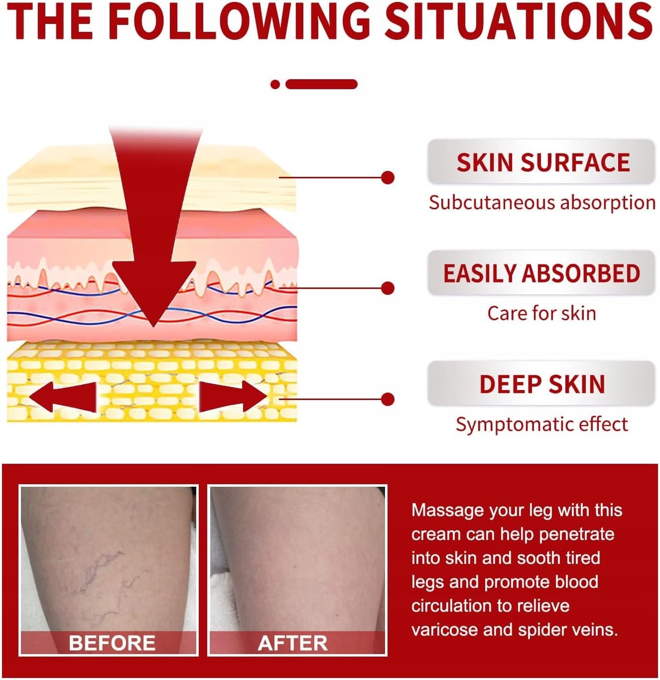 Крем від варикозного розширення вен був розроблений, щоб мінімізувати видимість венозних вен, які викликані застоєм крові та ослабленням стінок вен, зняти набряки та покращити кровообіг.