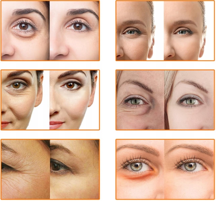 - Освітлює темні кола, освітлює шкіру навколо очей, ніжно масажує крем C-ream для покращення кровообігу навколо очей і зменшити зморшок.