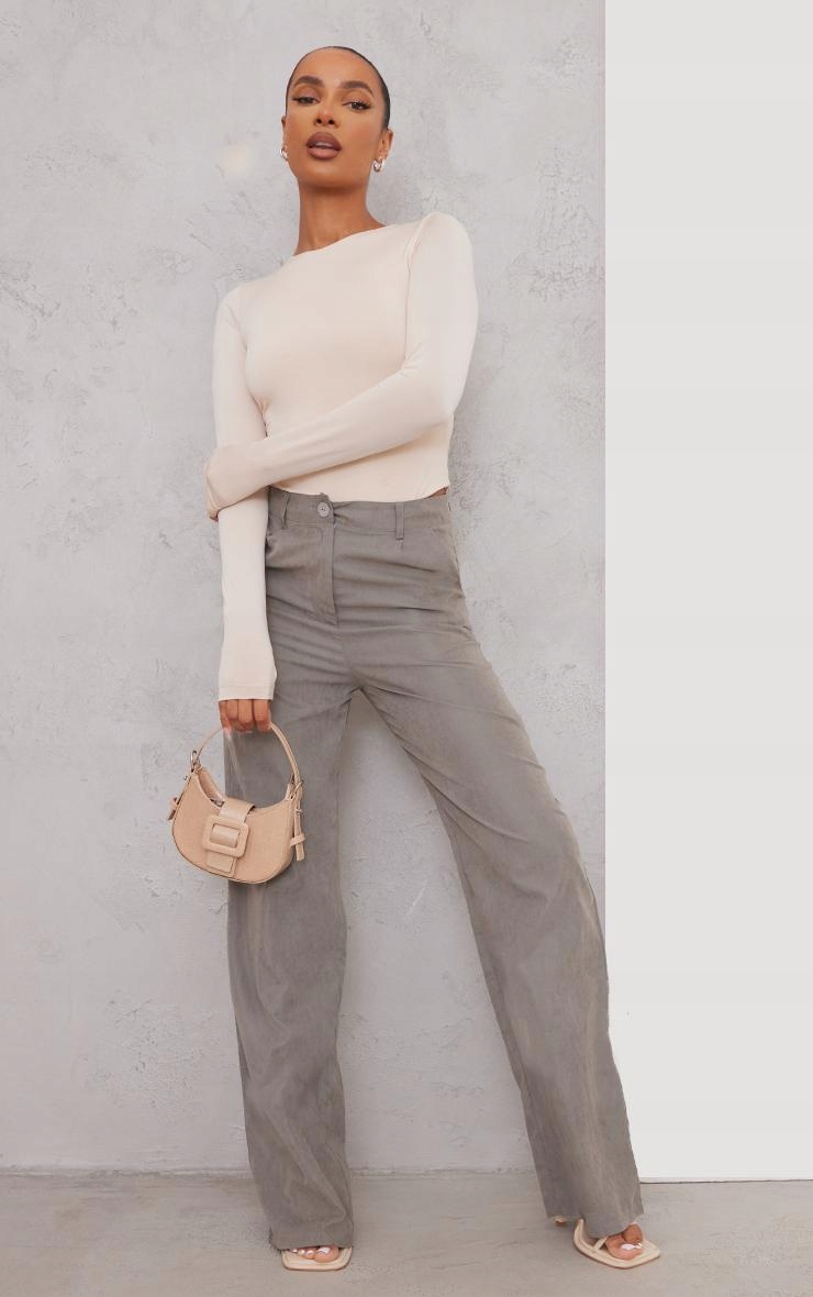 КРЕМОВЕ ГЛАДКЕ БОДИ З ДОВГИМИ РУКАВАМИ, ПРИТАЛЕНЕ PRETTYLITTLETHING 34
