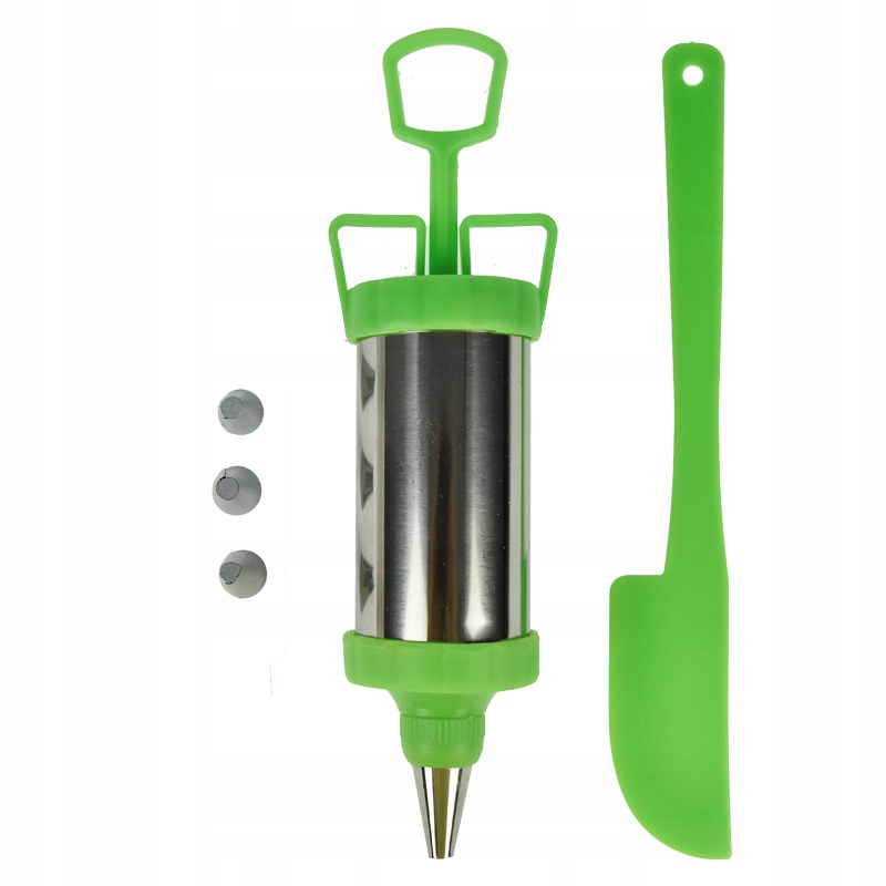 Завдяки чотирьом змінним наконечникам ви зможете створювати красиві прикраси різноманітної форми. Крім того, упаковка містить зручну лопатку, яка спрощує розгладжування або порціонування крему.