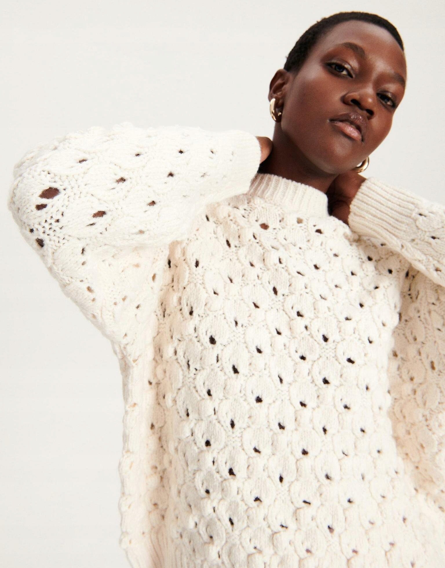 Кремовий відкритий светр Класичний светр з довгим сільським декольте стандартний комір зарезервований m