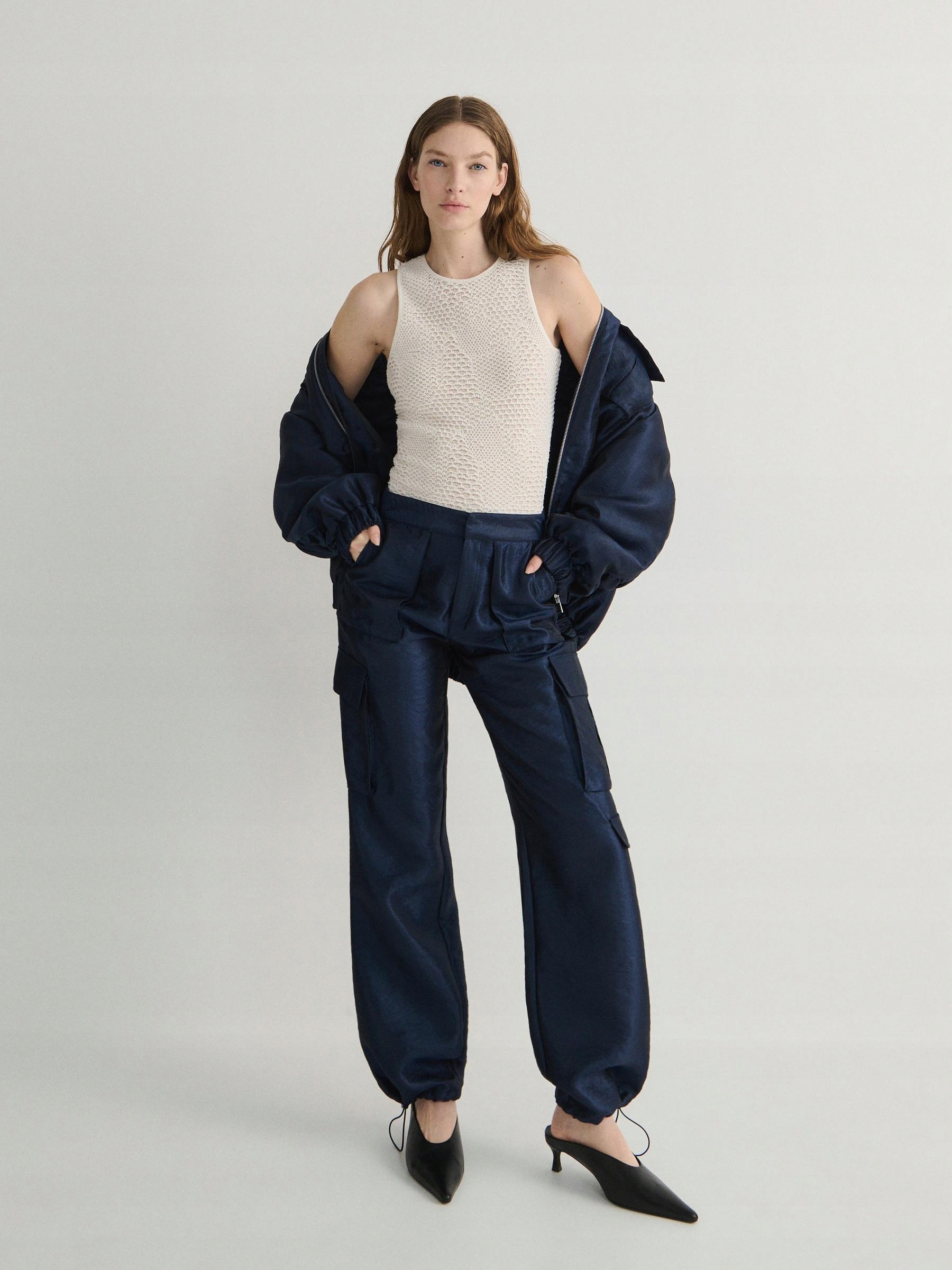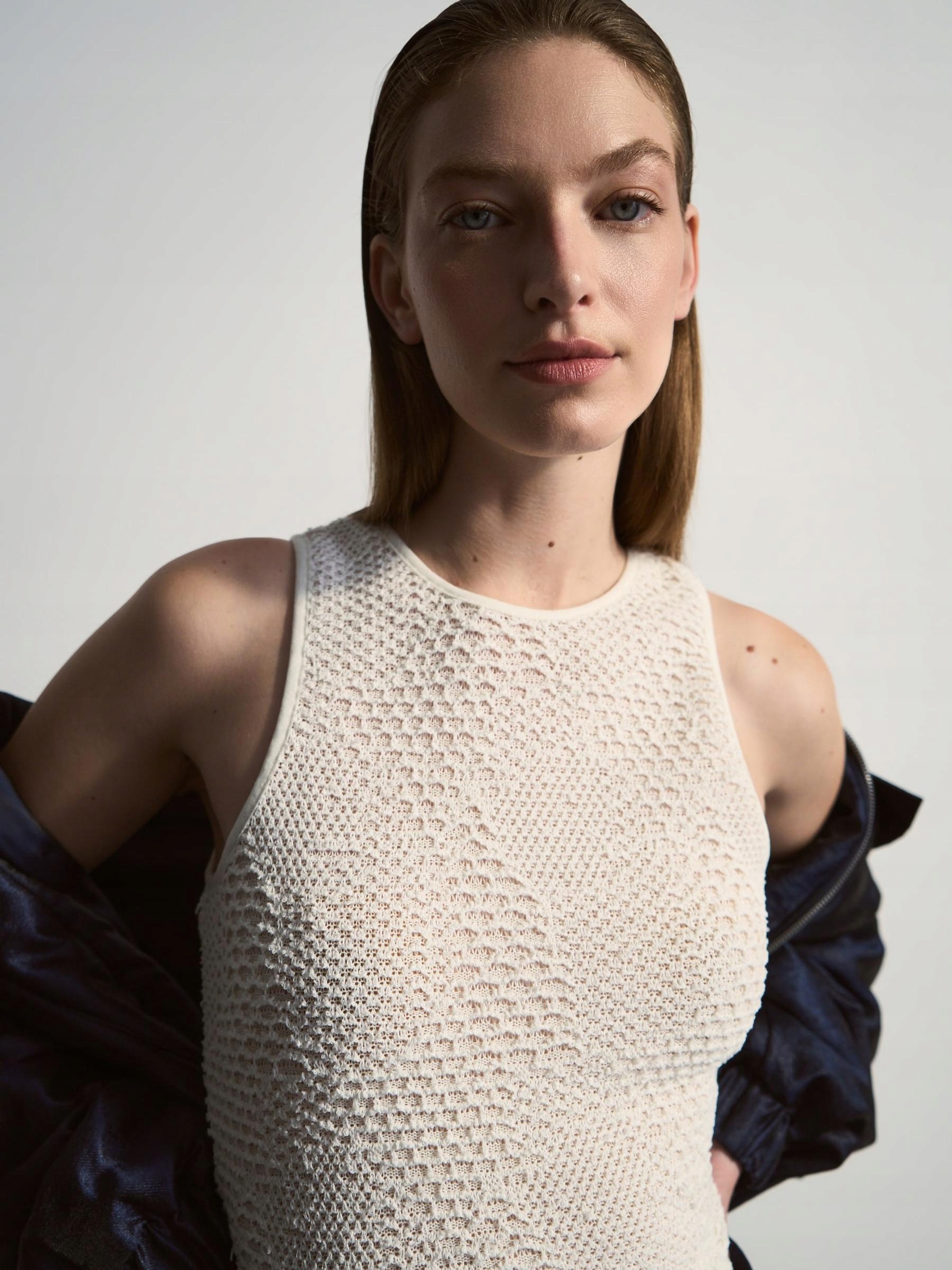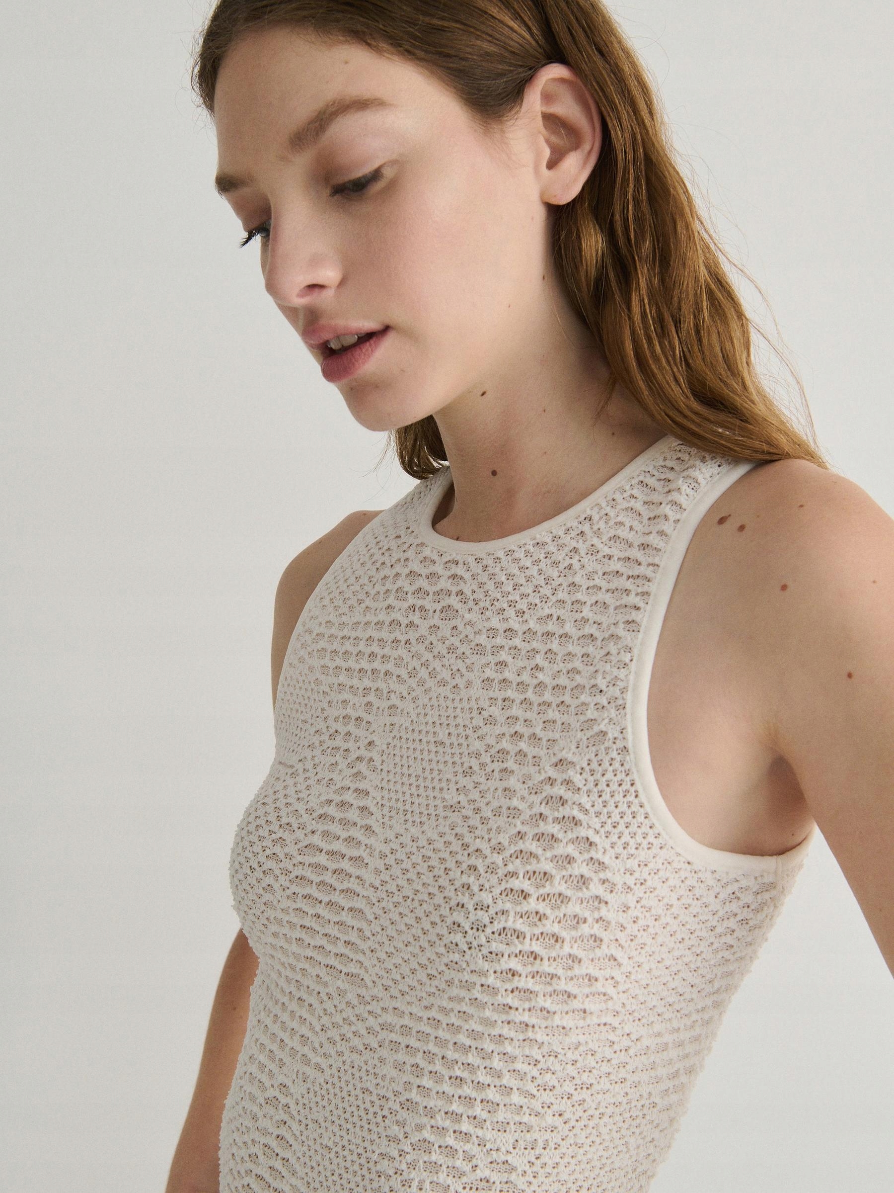 KREMOWY DZIANINOWY TOP NA RAMIĄCZKACH HAFTOWANY KLASYCZNY S