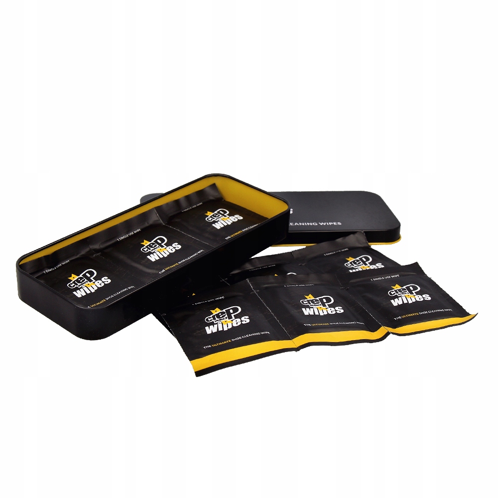 Серветки Crep Protect Wipes мають дві поверхні: з одного боку, шорстку - для видалення більших забруднень, а з іншого - делікатну - для завершення очищення. Металева упаковка містить 12 окремих пакетів, кожен з яких містить одну серветку.