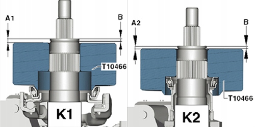 - Використовується для вимірювання зазору підшипника зчеплення, для подальшого підбору розпірних дисків при регулюванні положення зчеплень - регулювання зчеплення «К1» і «К2» DSG, 06.2011 і новіше.