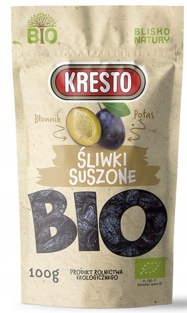 śliwski Bio Kresto - продукт органічного землеробства , де великий акцент робився на захисті навколишнього середовища з особливим наголосом на високій якості води та ґрунту. Завдяки вмісту поліфенолів , вітаміну A та вітаміну Е, який рідко зустрічається в фруктах, вони вважаються сильними антиоксидантами . Вони містять велику кількість мінералів та вітамінів В, які сприятливо впливають на нервову систему та добробут. Крім того, сливи є цінним джерелом клітковини, відповідальним за підтримку балансу організму. Вони особливо рекомендуються людям, які піклуються про свою фігуру.