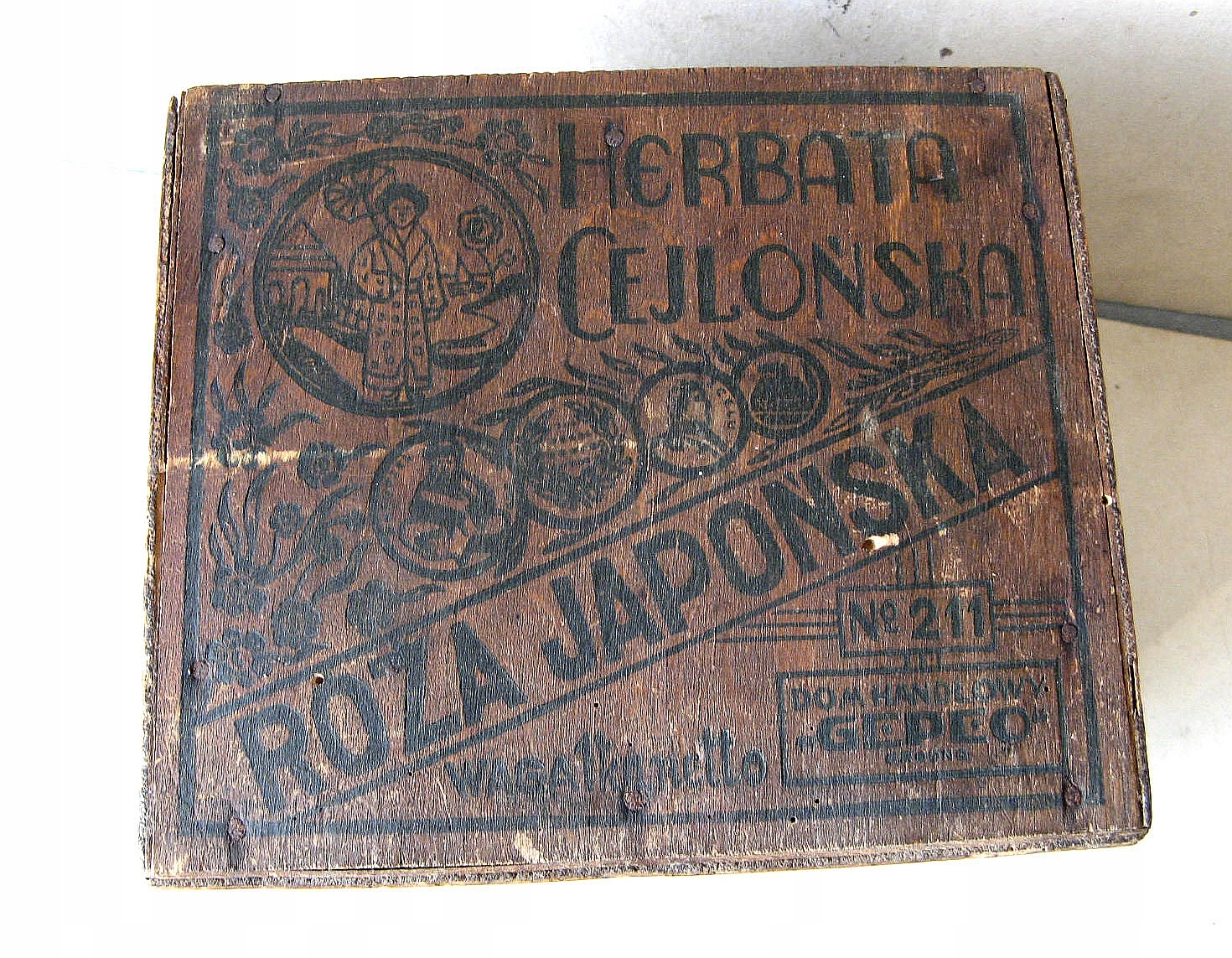 Kresy Wschodnie GRODNO 100-letnie Drewniane PUDŁO : HERBATA Polska REKLAMA