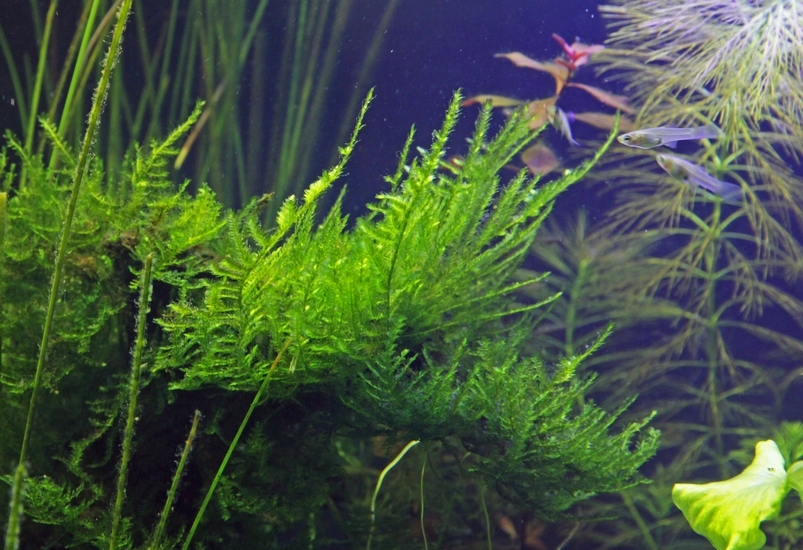 Вогняний мох (Taxiphyllum sp.) є одним із найцікавіших акваріумних мохів. Гілочки ростуть вертикально вгору, набуваючи форми хвилюючогося полум’я. При правильному наведенні він створює щільний ряд. Ідеально підходить для красивих композицій акваскейпінгу. Він відносно швидко росте і його легко вирощувати.