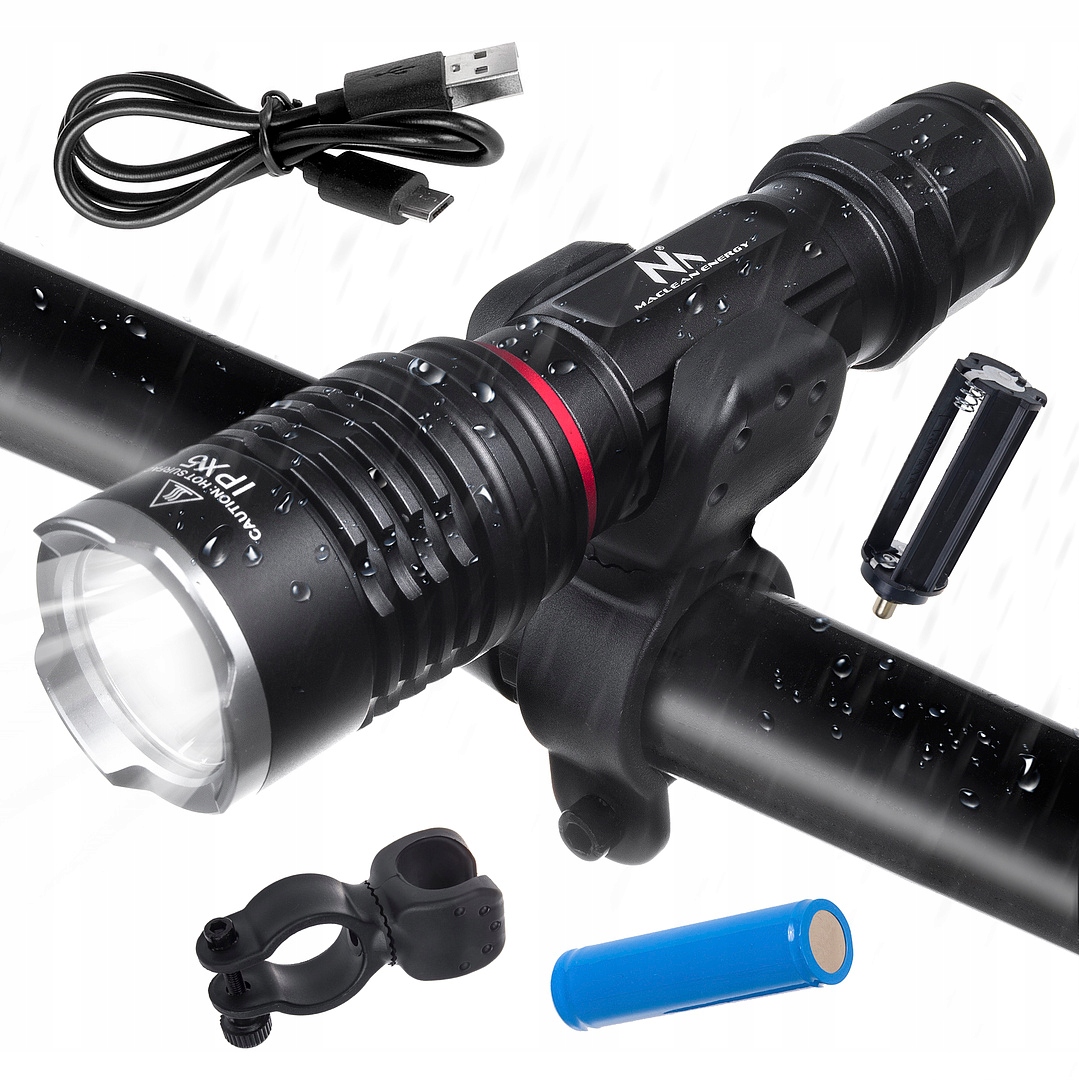 Високоякісний велосипедний ліхтарик з можливістю заряджання через USB від відомої компанії Maclean Energy. Простий у використанні і зручний акумуляторний ліхтарик. Він має дуже потужне джерело світла - Cree LED останнього покоління. Ліхтарик має 3 режими освітлення: 100%, 50%, спалах.