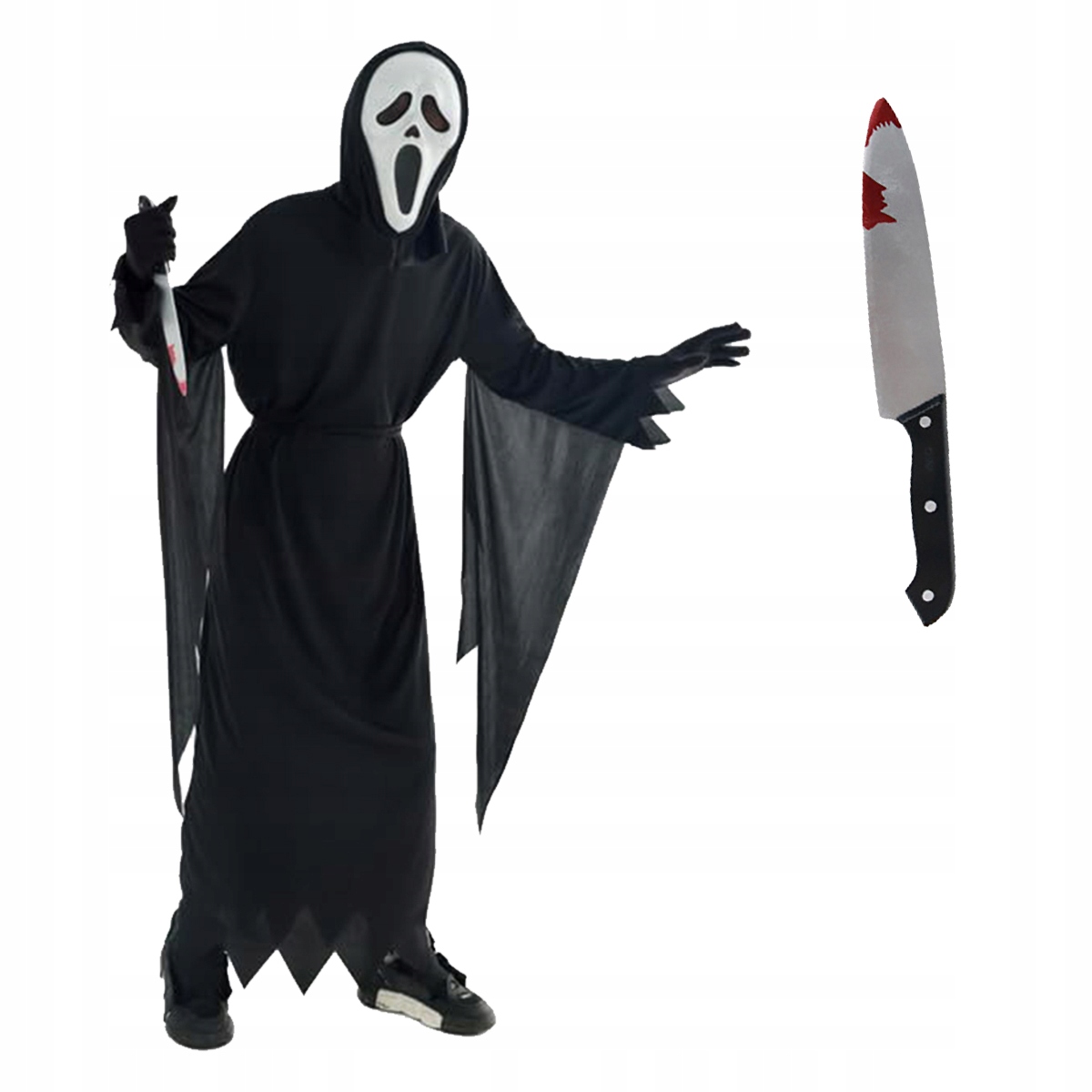 -йкровний костюм містить 1 жахливий розкішний халат, 1 ремінь, 1 пара рукавичок, 1 привидна маска та 1 пластиковий ножа-біз, схожий на справжню іграшку.