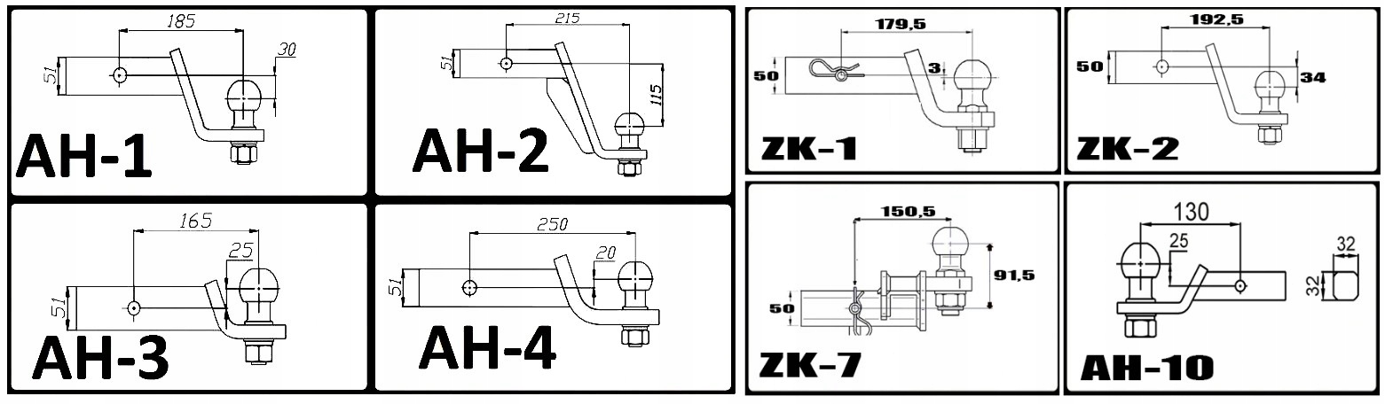 вертикальне збільшення (висота від центру отвору для шпильки до центру кулі-гачка) - 91,5 мм