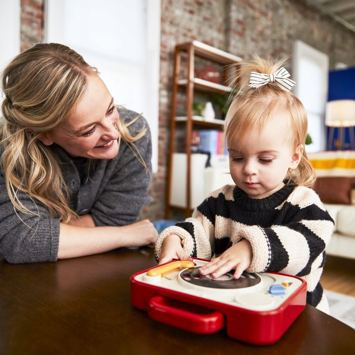 Інтерактивна музична консоль перенесе вашу дитину у світ музики та звуків. Обертовий вініл з вражаючими кольорами, захованими під тарілкою, і тримач голки імітує дію реального повороту, забезпечуючи дивовижний досвід. Завдяки 13 побудованим скельним мелодіям та повзункам зміна малюка може створити власні музичні композиції, розвиваючи уяву та творчість.