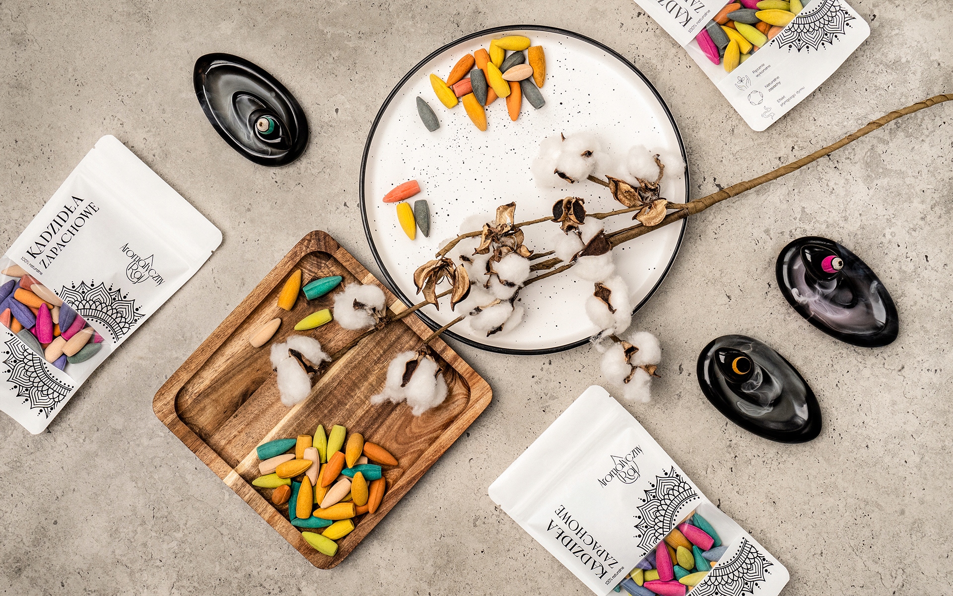 Унікальна конструкція означає, що дим тече з дна пахоща, створюючи гіпнотизуючий каскадний ефект. Завдяки цьому вони не тільки наповнюють простір інтенсивним ароматом, але й забезпечують виняткові зорові відчуття , які сприяють розслабленню. Вони ідеальні як пахощі для медитації , вводячи відповідний настрій.