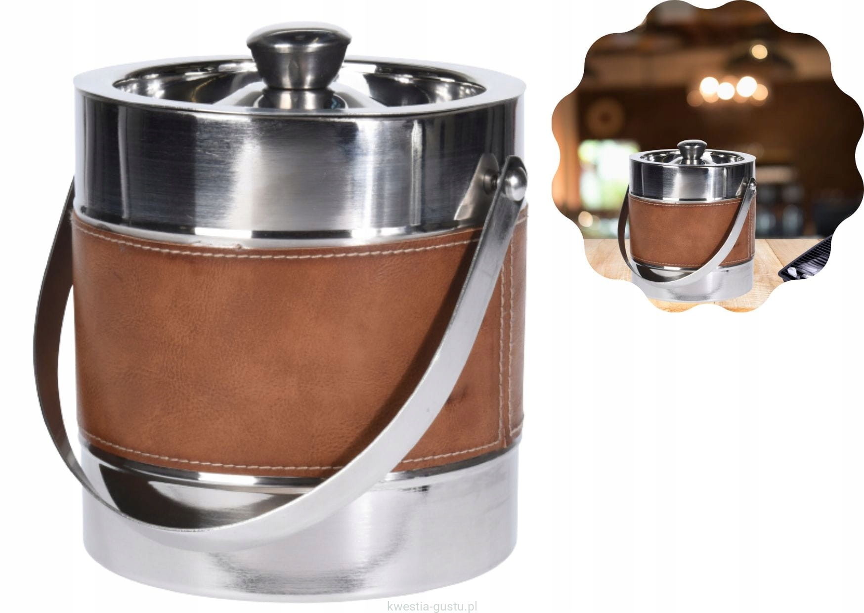 Елегантний кулер, відро для подачі льоду. Ви також можете використовувати для охолодження напоїв у пляшках. Лід, поданий у ньому, завдяки ізоляції, не змінюватиме свою послідовність довго. Цікавий подарунок для чоловіка. Ви можете придбати шейкер з тієї ж серії. Оздоблення - Золота покриття з нержавіючої сталі. Накрийте гумовою прокладкою та ручкою - срібло. Температура всередині відро буде тримати лідерство в постійній формі дуже довго, завдяки побудованню відра, що складається з двох стін судна, залежно від того, як це буде відкрито. Бронза