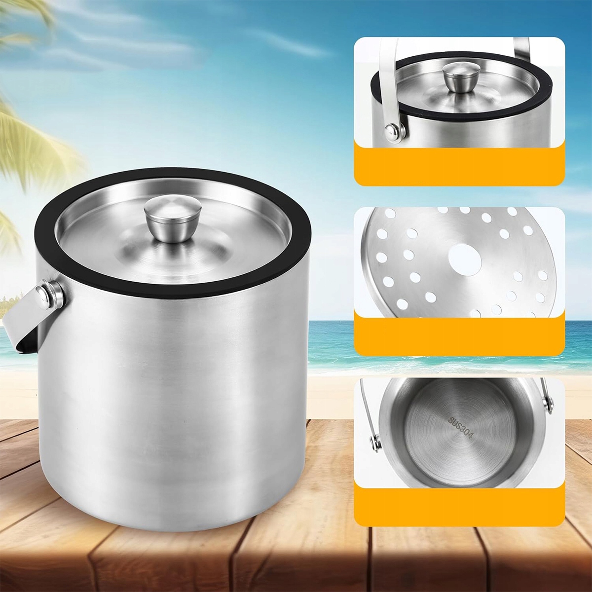 Крижане відро для вечірки: крижане відро з силіконовою кришкою є важливим елементом кожної події. Він забезпечує достатню кількість льоду для вечірки, ідеально підходить для сімейних зборів, для коктейльних барів, пікніків, грилів, для пляжу, на внутрішньому дворику, ресторані, вечірках тощо. Підтримує низьку температуру вина, шампанське, віскі, горілку, коктейлі та пиво.