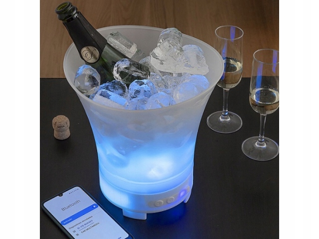 4 Так! Крижаний контейнер з динаміком та світлодіодами на акумуляторі, пропонованій нашим магазином гаджетів, є додатковим гаджетом для подій та урочистостей. Він також чудово під час стихійного гриля в саду. Здивуйте своїх гостей! Ми впевнені, що вони будуть вражені, побачивши ваш контейнер з льодом з оратором та світлодіодами! У гаджета є стільки, скільки 5 режимів освітлення, пристосованих до музики та 7 кольорів ! Він є водонепроникним і працює на Bluetooth