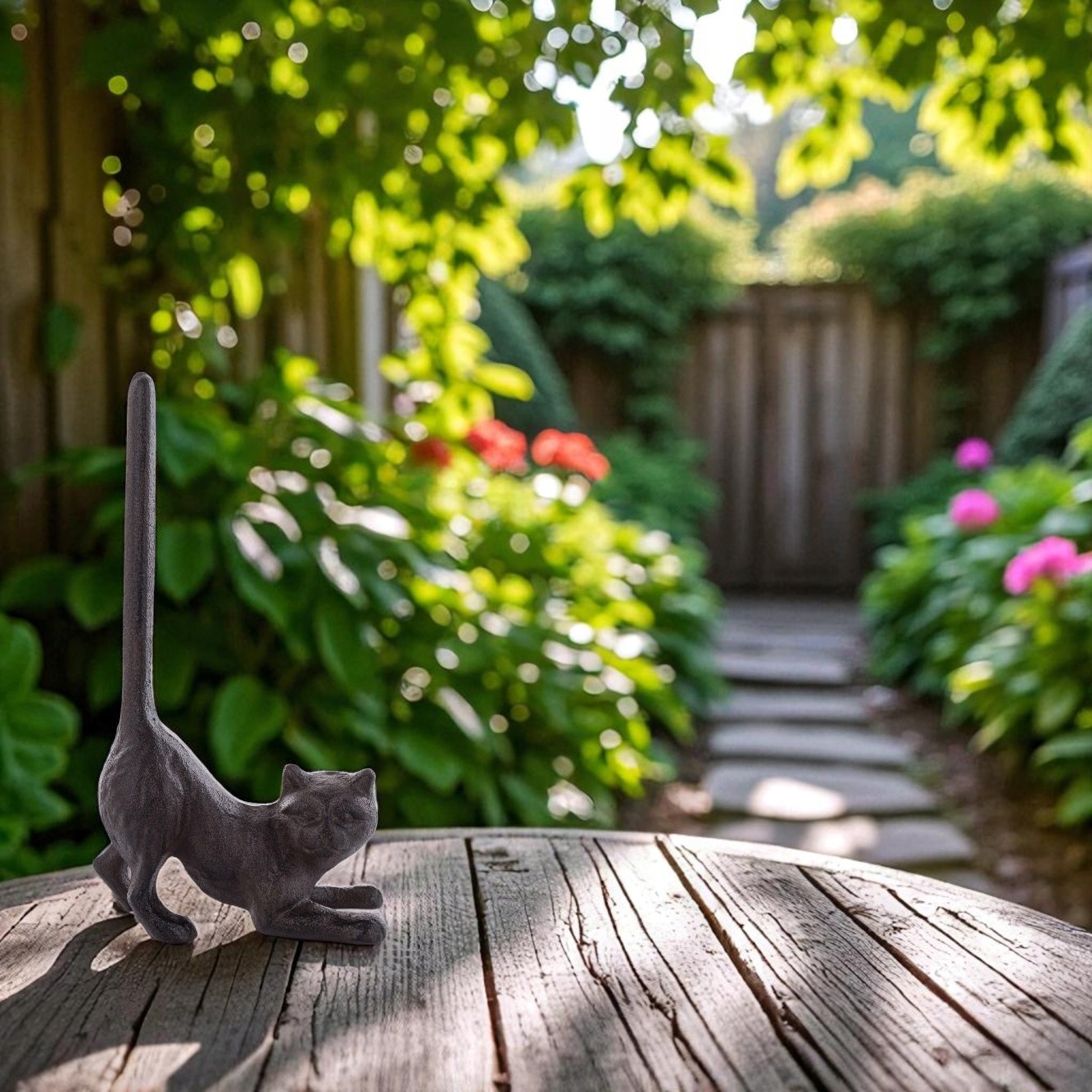 Оригінальне оздоблення та функціональний півзахисник в одному! Цей чарівний кіт не тільки кидає очі, але й добре працює як практична підставка для саду чи кухонної струни.