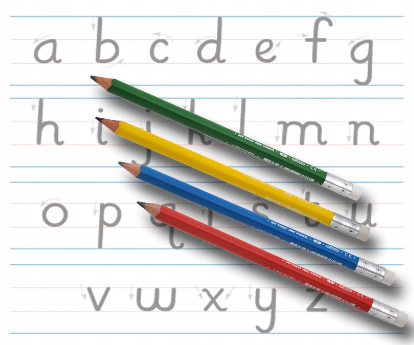 олівець виготовлений з високоякісної деревини. Трикутна, товста форма виготовляється правильною ручкою. Ідеально підходить для дітей, щоб навчитися писати. Тому спочатку міцний і м'який графіт з твердістю B дозволяє робити креслення з мінімальним тиском. Збагачений м'якою та ефективною еластичною смугою. Кожен олівець має друкований штрих. Колір, що надсилається відповідно до наявності - без вибору.