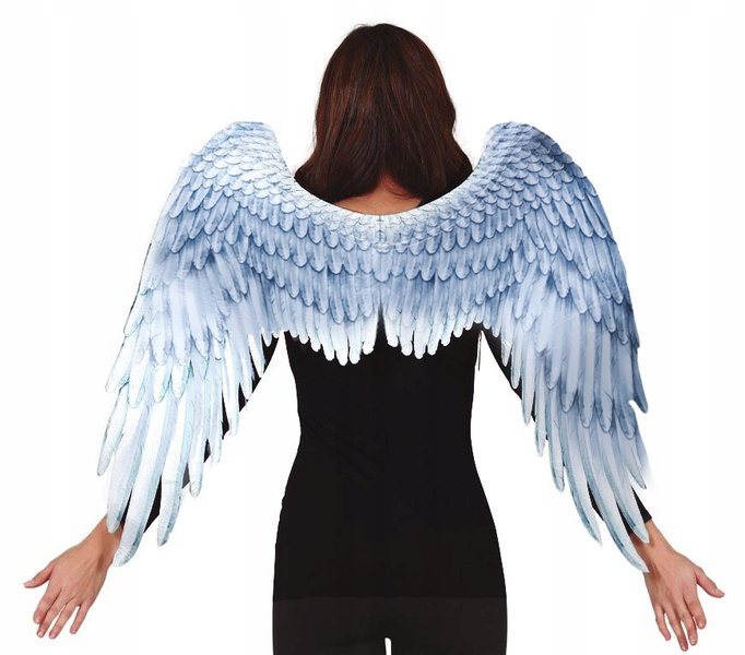 КРИЛА АНГЕЛА, СРІБЛО 100 Це надзвичайно елегантний і привабливий аксесуар, який ідеально доповнить костюм ангела, феї, фантастичного персонажа або різдвяний наряд. Крила виготовлені з жорсткого, міцного матеріалу з реалістичним принтом пір’я, завдяки чому вони виглядають надзвичайно вражаюче як у реальному житті, так і на фотографіях.