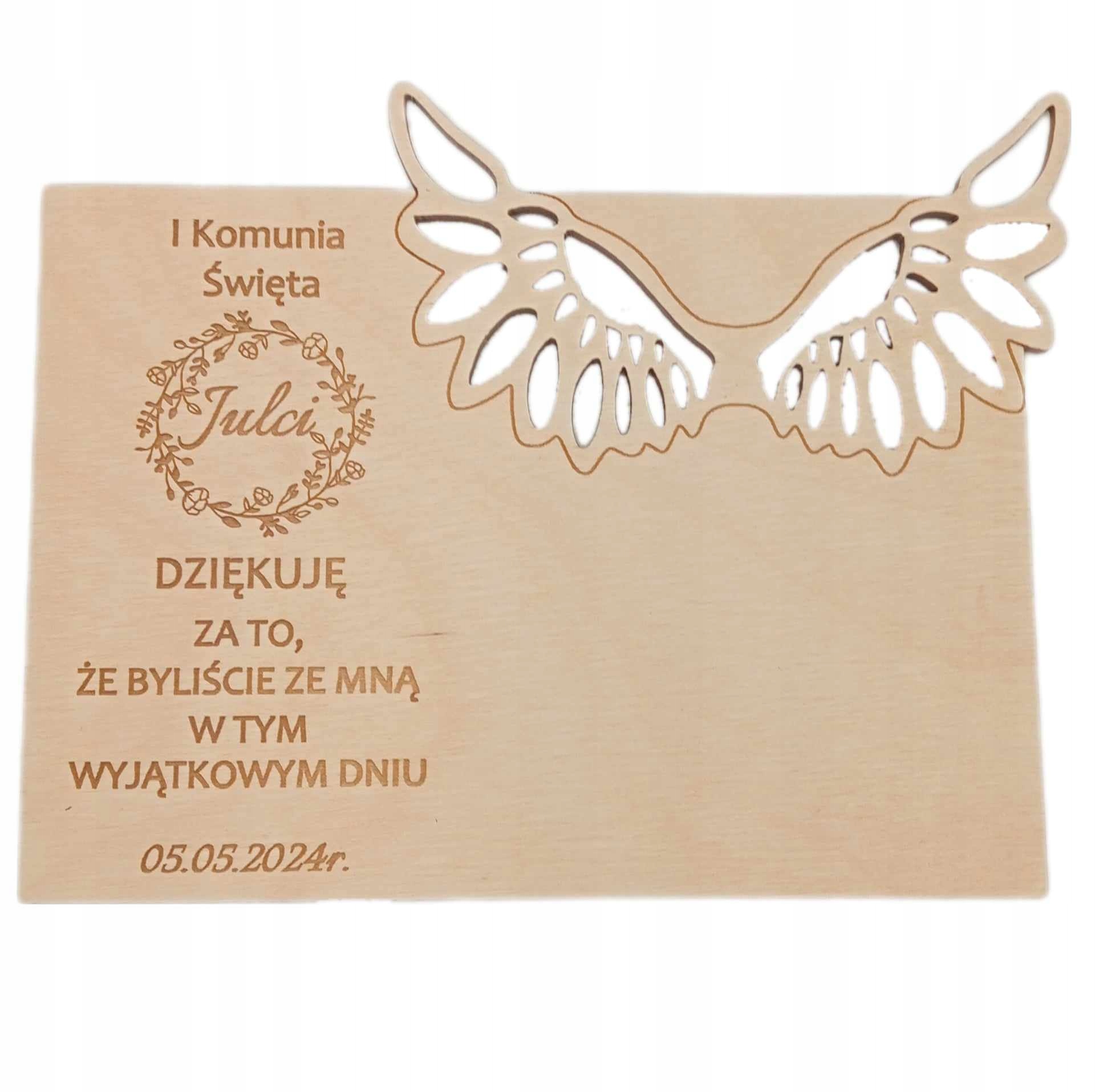 Предметом продажу є дерев'яна табличка для янгола з іменною подякою з нагоди Першого Причастя.