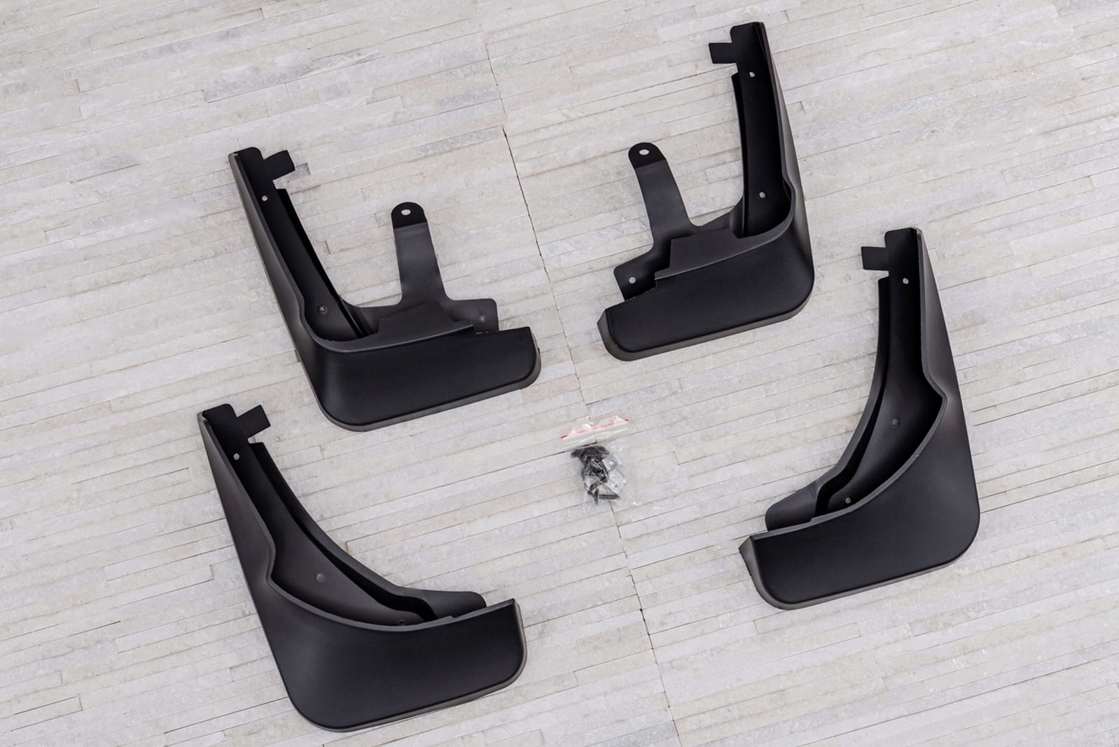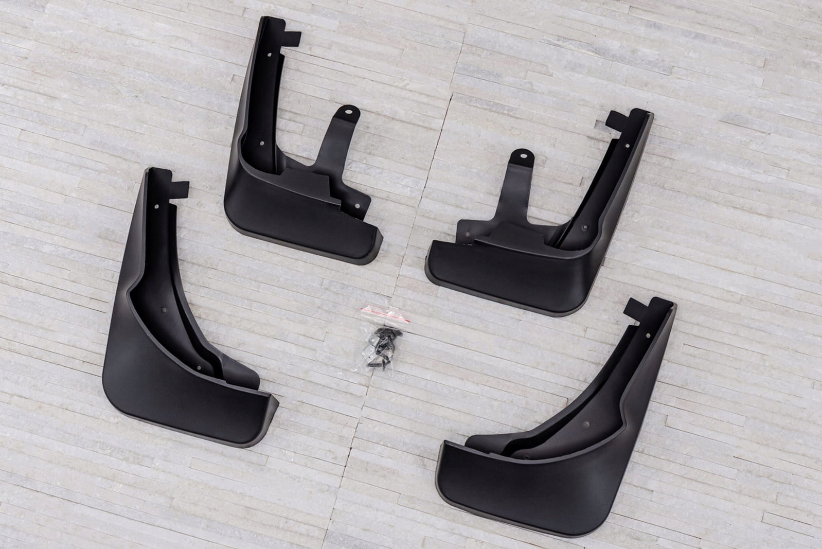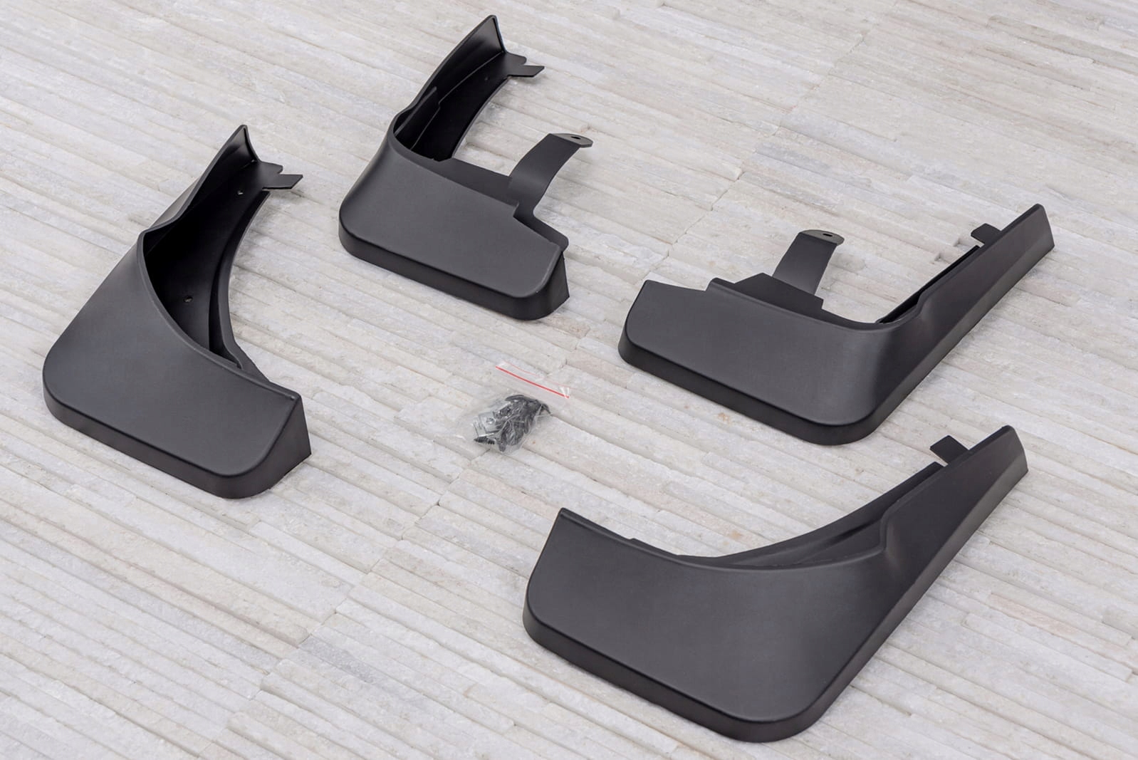 У набір входить набір із чотирьох бризговиків та елементів кріплення. Виріб встановлено на заводські місця, без додаткових доробок. Ми рекомендуємо установку в професійній майстерні.