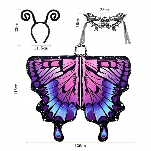 ♥ накидка метелика, виготовлена з м'якої тканини, немає жорсткої внутрішньої конструкції, що робить її дуже зручною для зносу.
