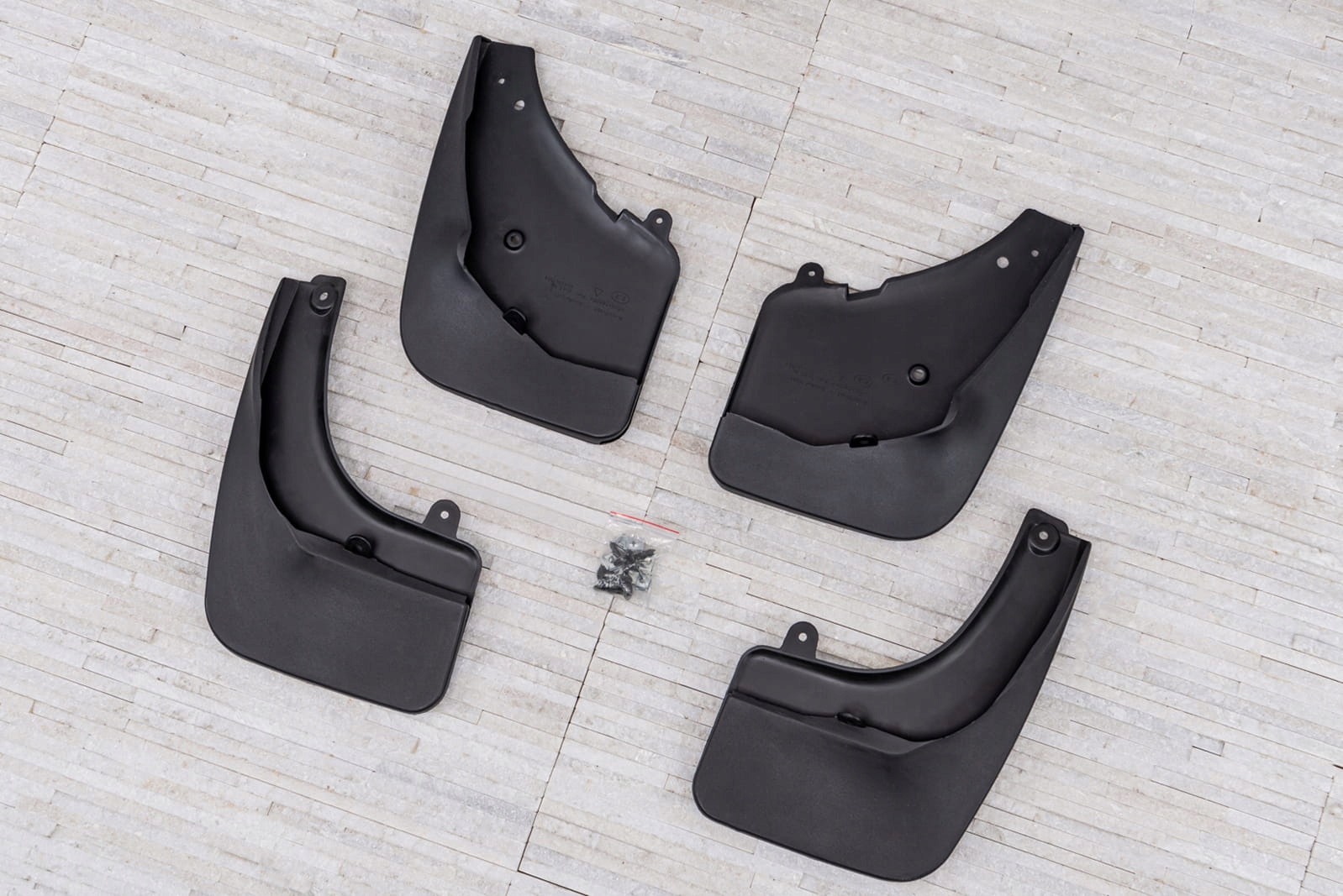 У набір входить набір із чотирьох бризговиків та елементів кріплення. Виріб встановлено на заводські місця, без додаткових доробок. Ми рекомендуємо установку в професійній майстерні.