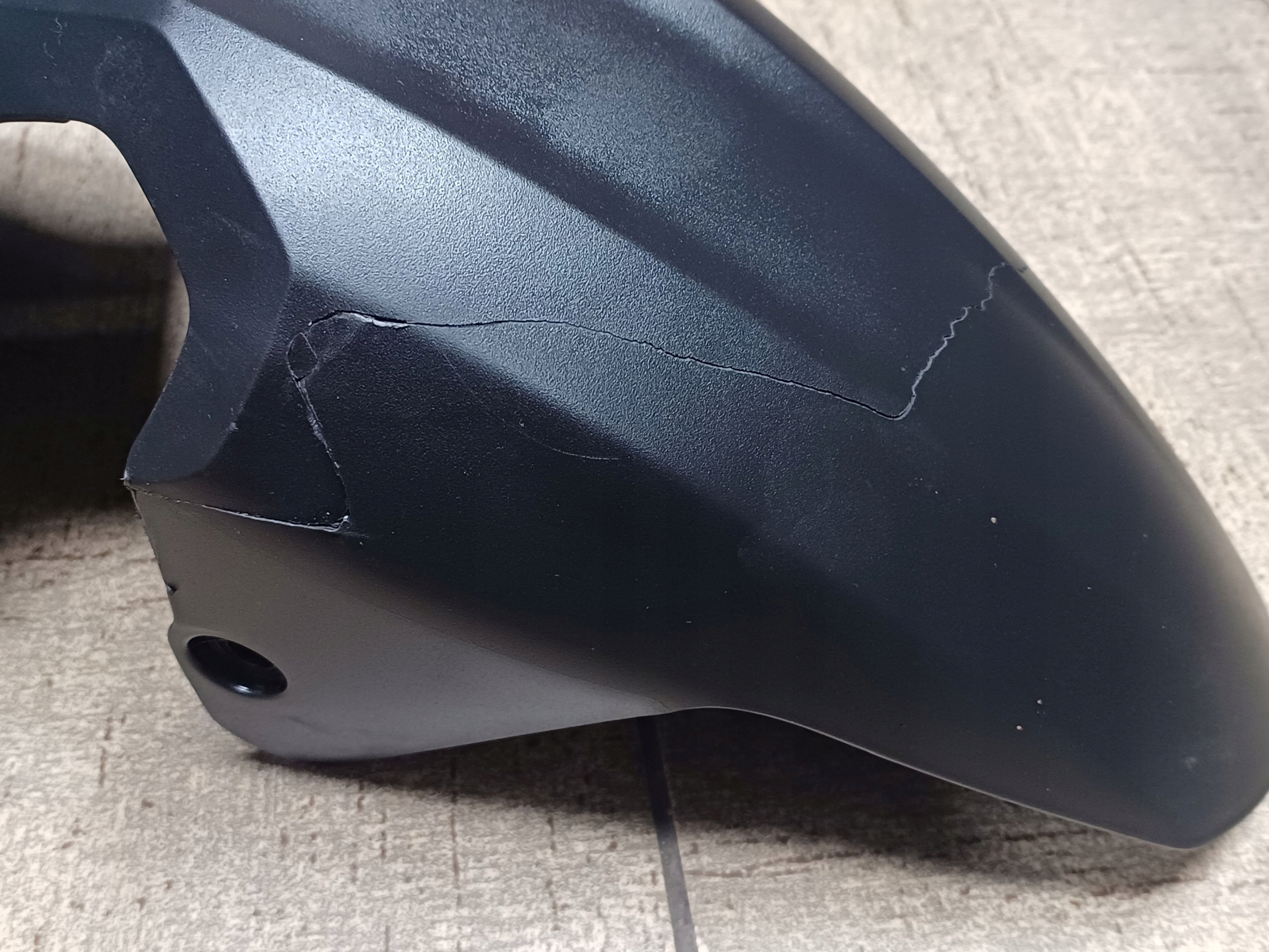 Пошкоджений, на фото видно подряпини та тріщина, прошитий гарячим способом.