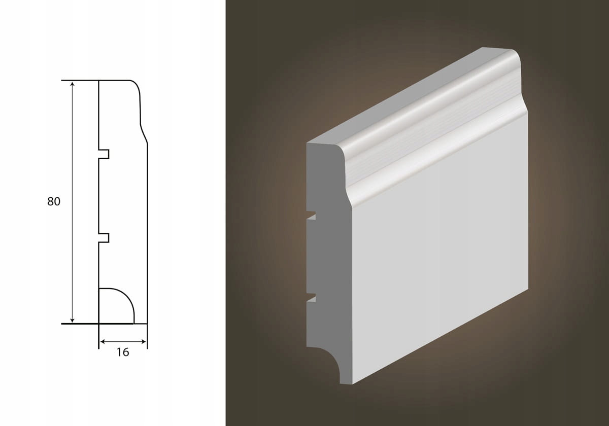 Плінтус Крим 80 НП Плюс виготовлений з високоякісного деревного матеріалу середньої щільності МДФ. Плінтус додатково має виїмки для проводки кабелів і, що найголовніше, він має вологостійкі властивості. Завдяки цьому продукт також можна використовувати в таких приміщеннях, як ванні кімнати та кімнати для чихання.