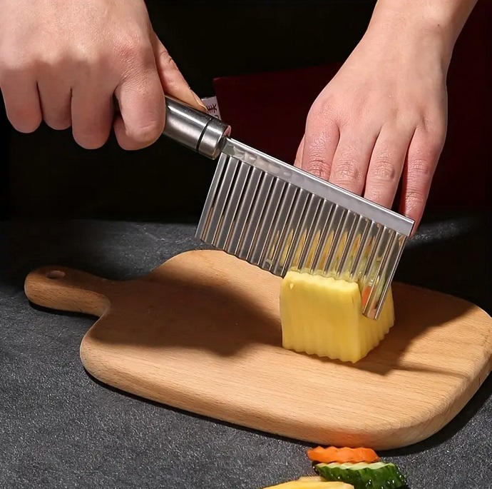 З гофрованим ножем їжа може бути не тільки більш барвистим, але й більш апетитним. На кухні фрі на вечерю не можна пропустити.