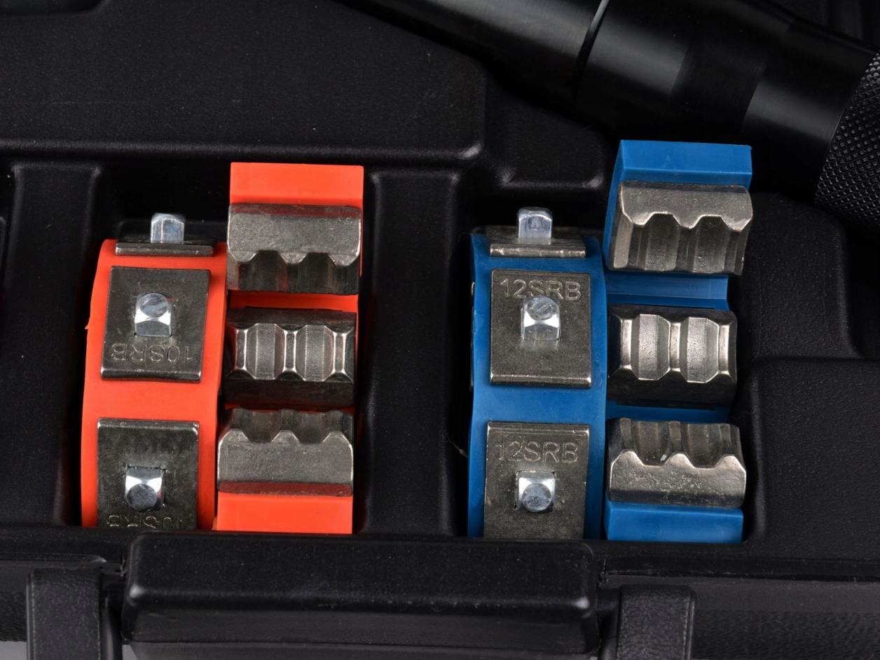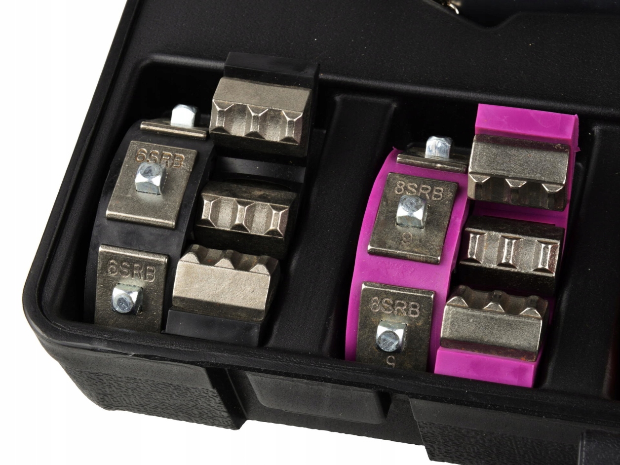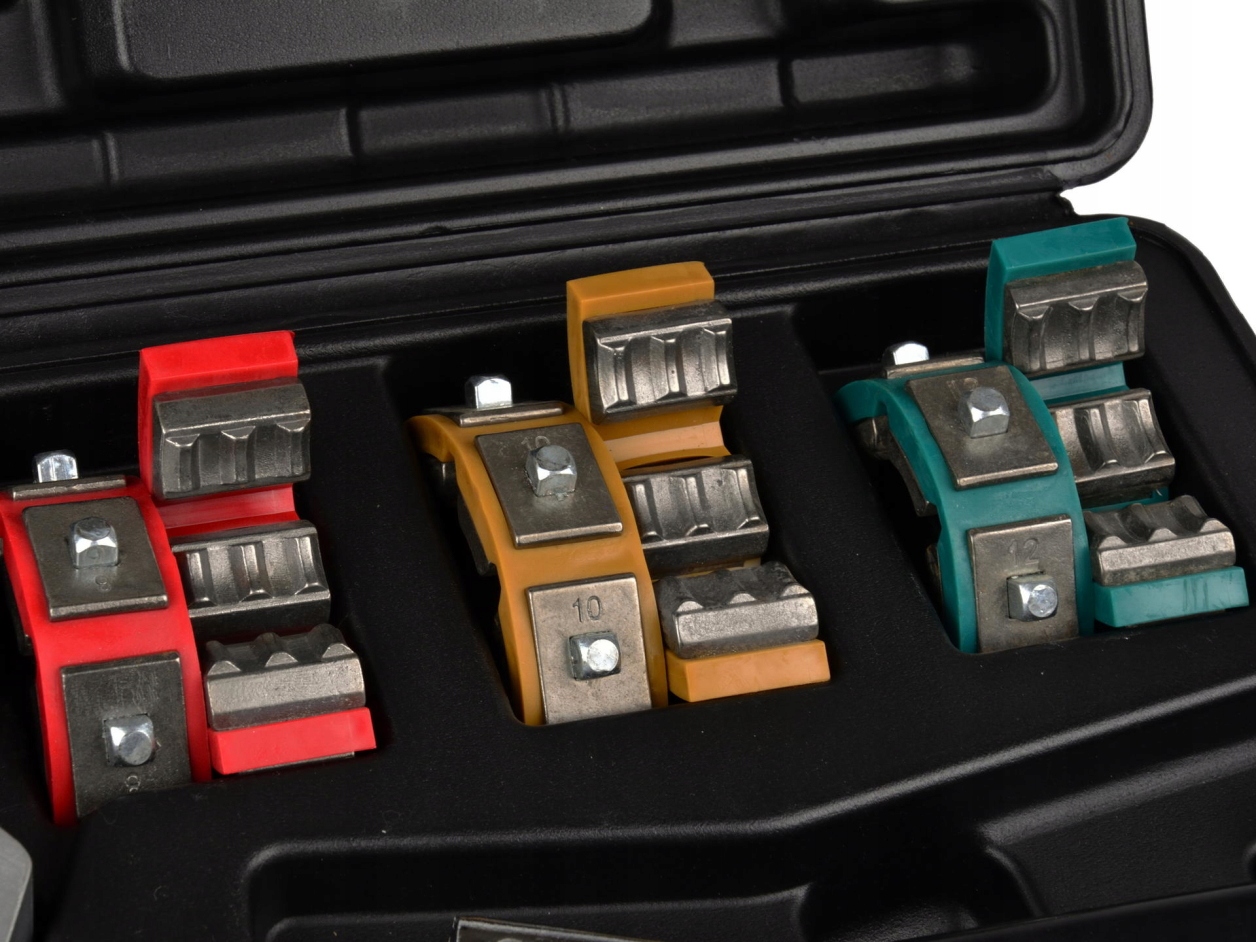 Клінчер для кінців шлангів кондиціонера - дуже корисне, просте пристосування для майстерень з ремонту автомобільних кондиціонерів. Обтискач дозволяє швидко, легко і точно опресовувати клеми. У комплект входять хомути (плашки) для шлангів різного діаметру. Все поставляється в міцній і естетичній валізі, тому його можна використовувати як в майстерні, так і в польових умовах.