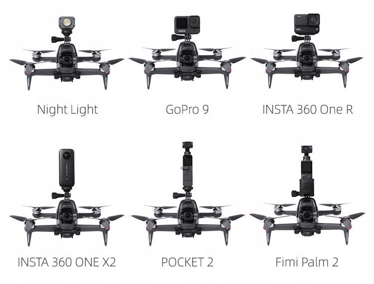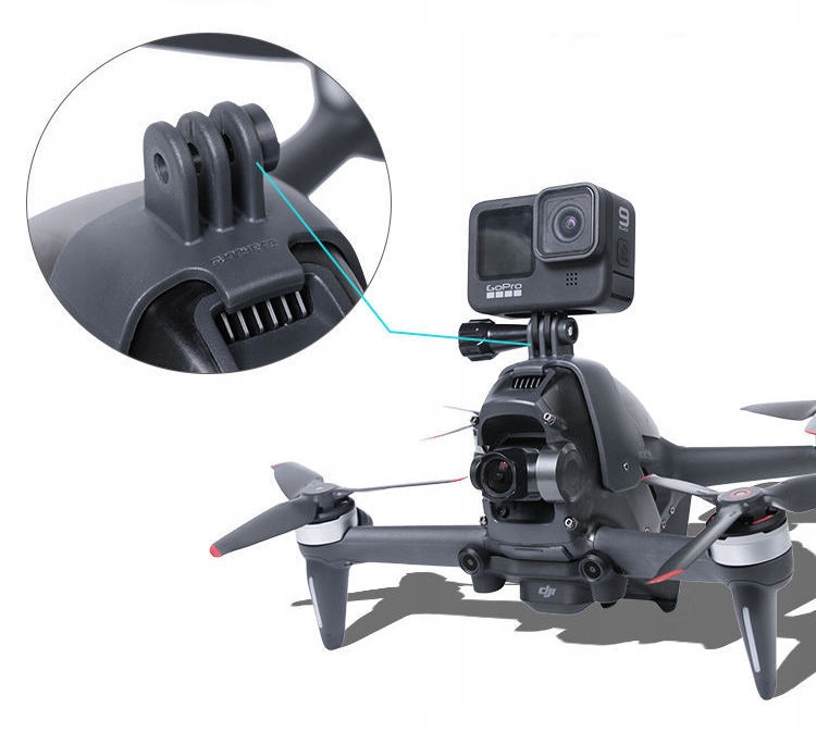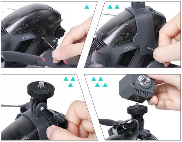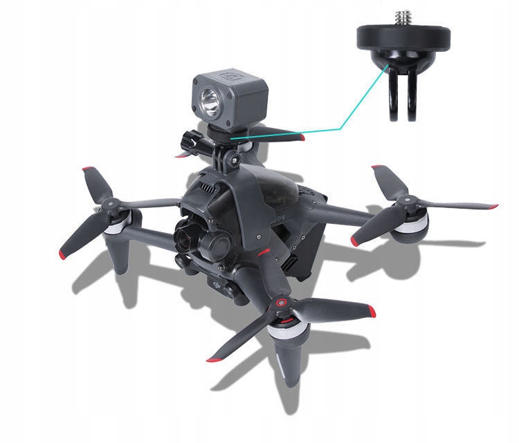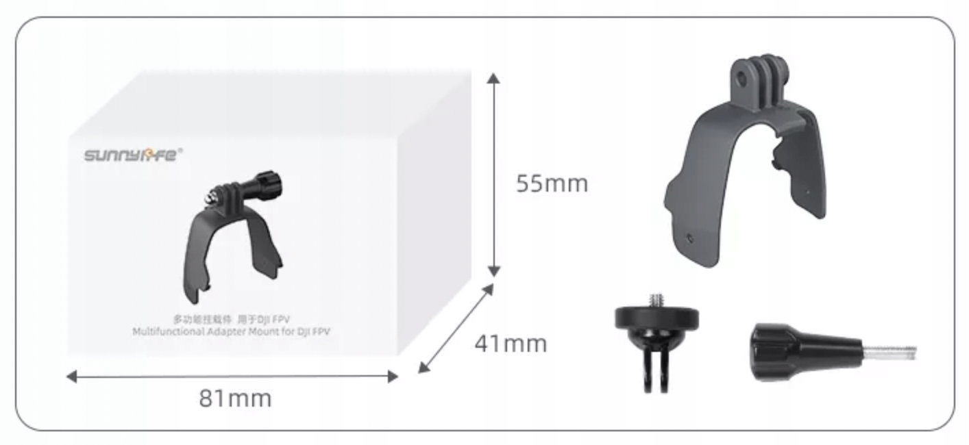 Продукт SUNNYLIFE дозволяє прикріплювати додаткові аксесуари з різьбою 1/4" (наприклад, світлодіодні лампи) і спортивні камери таких компаній, як GoPro / SJCAM / Xiaomi, до дронів DJI FPV / DJI OSMO ACTION / Sony Action Cam / Insta360 тощо.