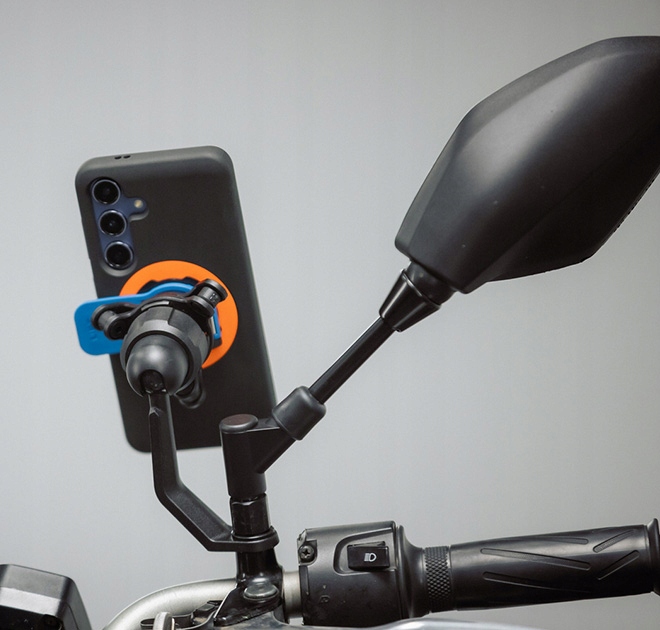Кріплення під кутом забезпечує простір для компонентів і декоративних елементів різні конфігурації установки з лівого або правого боку скутера або мотоцикла. Більш точне налаштування кута огляду вашого телефону за допомогою поворотної головки підвісу – інструменти не потрібні.