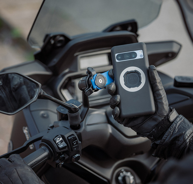 Кріплення Quad Lock® Mirror Stem Mount, створене для доповнення естетики вашого мотоцикла, має мінімалістичний і міцний дизайн, який ідеально поєднується з вашим скутером або мотоциклом.