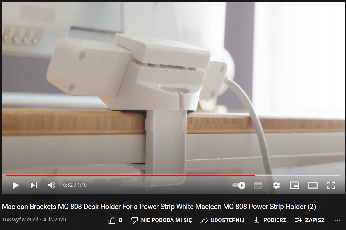 Тримач смуги живлення дозволяє прикріпити смужку на столі легший доступ до розеток живлення, зменшуючи заплутування кабелів під столом. Кріплення за допомогою настільного затискача просте і не потребує жодних інструментів.