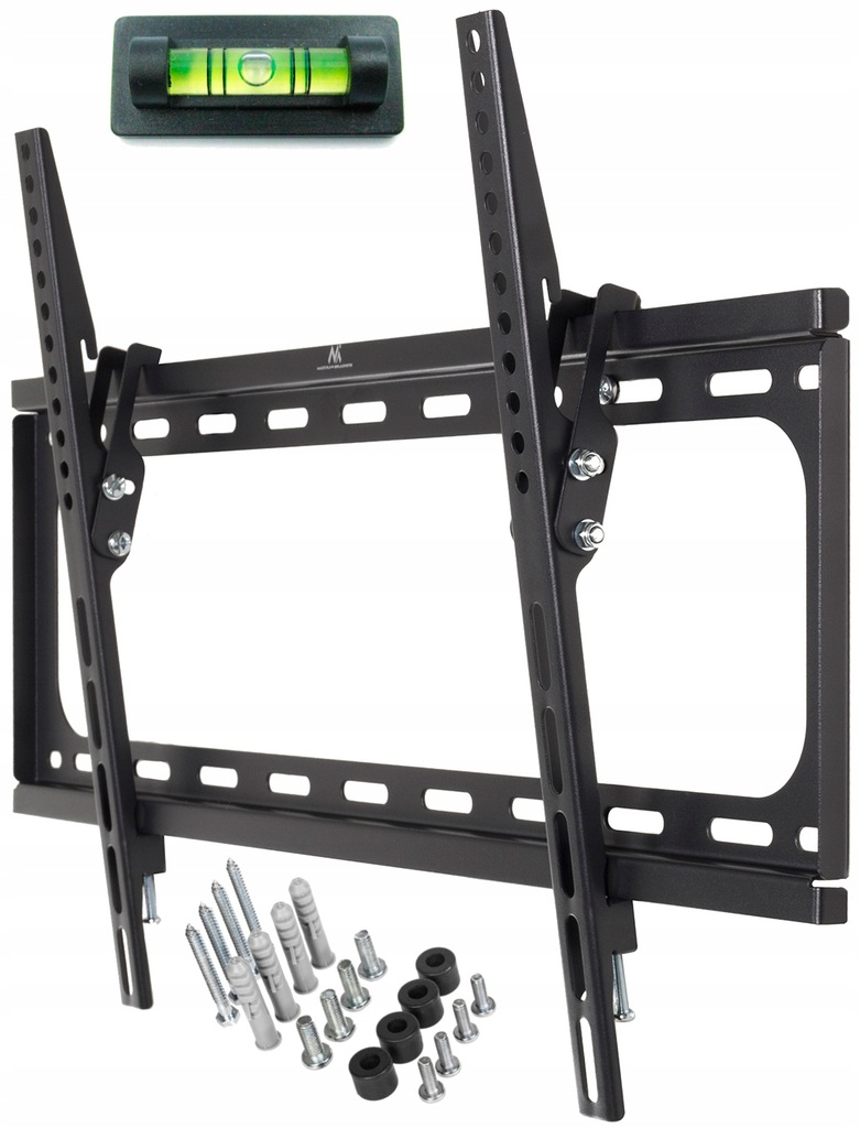 Набір містить ватерпас для полегшення правильного встановлення, набір гвинтів для кріплення кронштейна до стіни та телевізора до кронштейна.