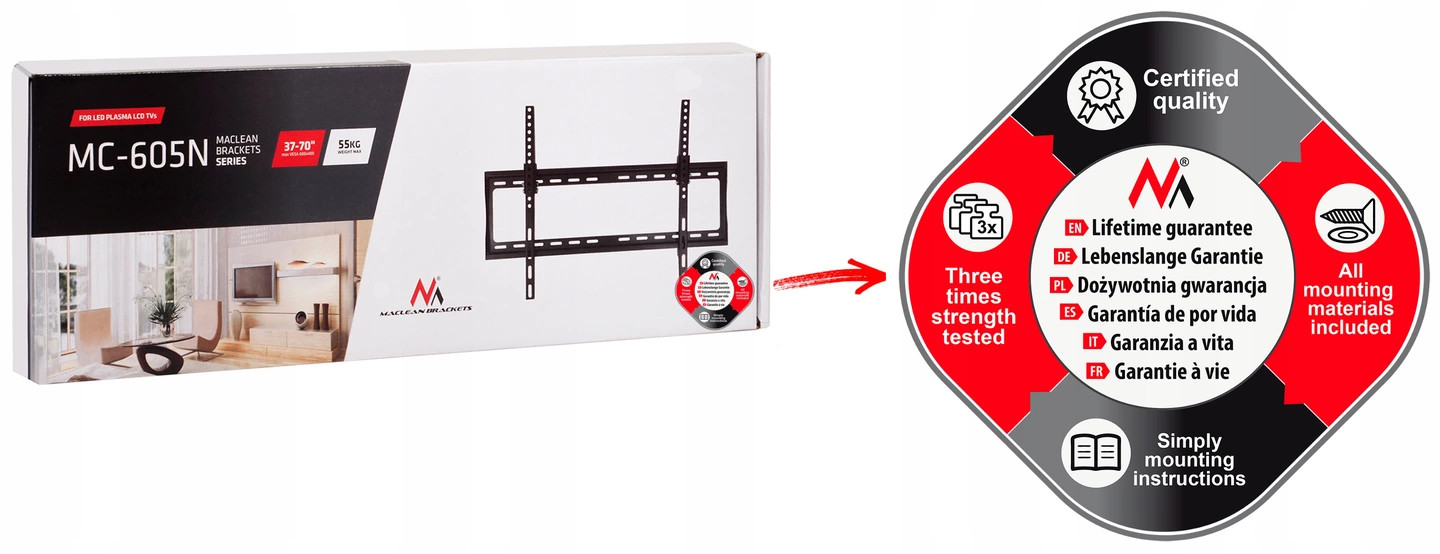 Компанія Maclean Brackets є найбільшим виробником LCD/LED/OLED кронштейнів для телевізорів у Польщі. Усі ручки, які ми продаємо, характеризуються високою якістю, сучасним дизайном і довговічністю завдяки використанню матеріалів найвищої якості.