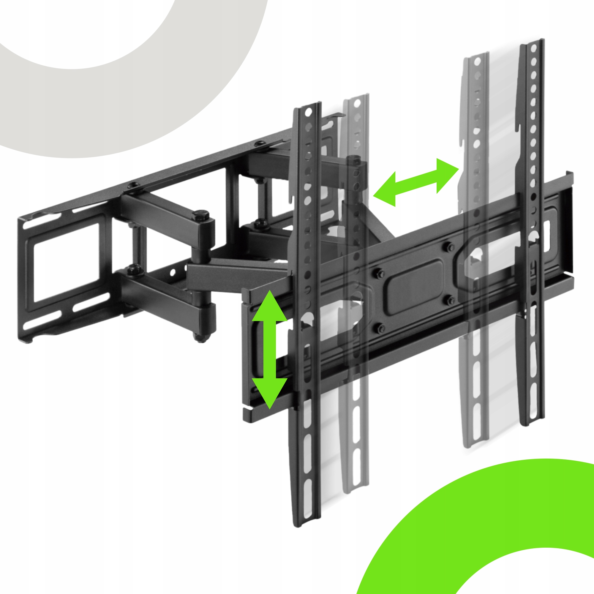 Вішалка оснащена стандартом VESA (75х75, 100х100, 100х200, 200х100, 200х200, 200х300, 200х400, 300х200, 300х300, 400х200, 300х400, 400x300, макс. 400x400 мм і все проміжне)що визначає відстані між монтажними отворами на задній панелі телевізора. Перевірте технічні характеристики свого телевізора та переконайтеся, що він підходить до вішалки. Це гарантує сумісність.