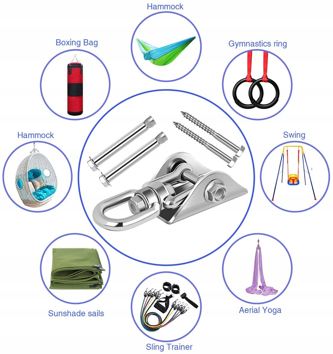 - ідеальне кріплення до боксерських груш, гойдалок «воронячі гнізда», підвісних стільців та багатьох інших виробів