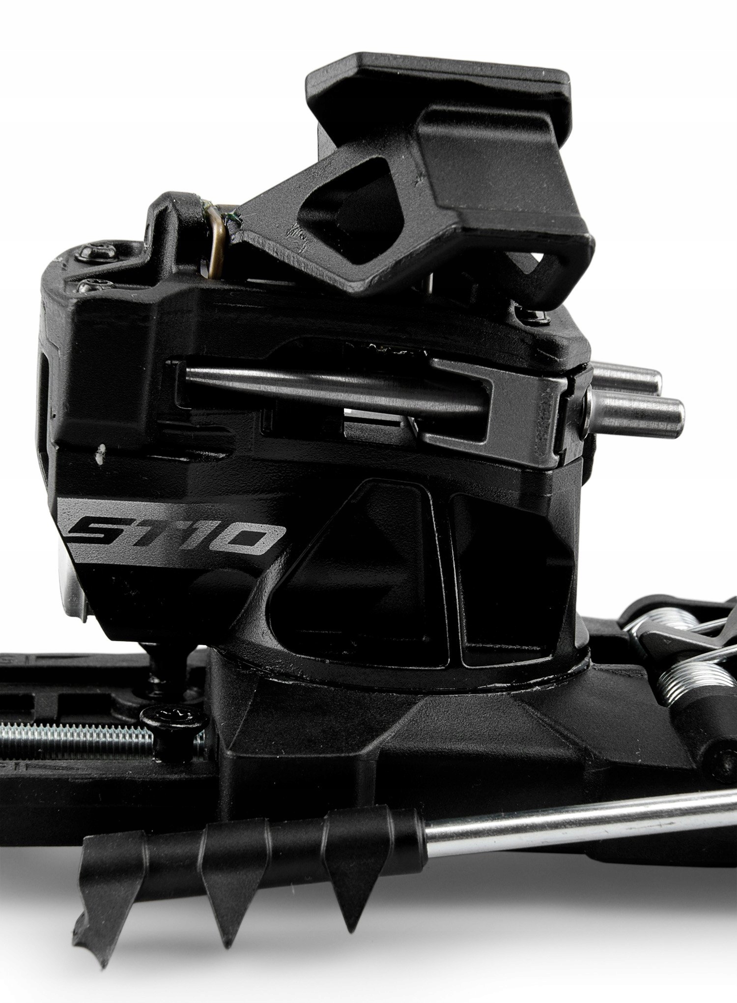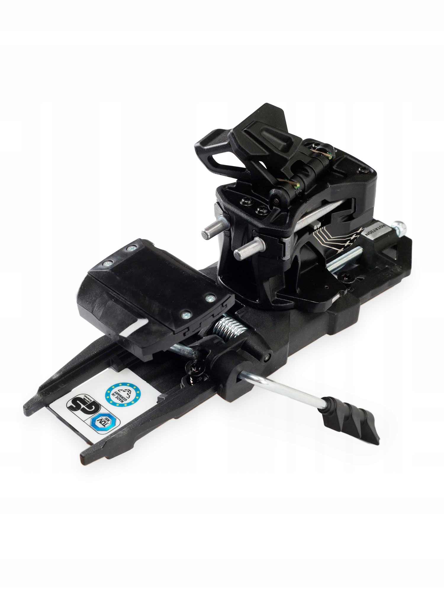 Завдяки спеціальній системі кріплення Step In Side Towers надягати кріплення надзвичайно легко. Ця модель дозволить точно направляти черевик до іклів. «Башточки», розташовані трохи нижче бивнів, ідеально розташовують передню частину черевика по відношенню до кріплення. Відмінною рисою гірськолижних кріплень Dynafit ST Rotation 10 - black є рухома головка в передній частині Rotation Toe Piece. Кріплення, розташоване безпосередньо під підошвою взуття, також спрацьовує в передній частині у разі бічного удару. Поворотний модуль у поєднанні з активною п'ятою забезпечує максимальну безпеку розблокування в разі падіння, сертифіковане TÜV. Крім того, кріплення дозволяє зменшити природне скорочення відстані між передньою частиною кріплення і п'ятою в результаті вигину лижі під час різкого динамічного катання на лижах або стрибків. Пружина, розташована між задньою пластиною кріплення та регулювальним гвинтом, є «гладкою» 10 мм, яка переміщує п’яту назад, коли до лижі прикладається сила спереду. Це зменшує навантаження на саму прив’язку та покращує її роботу (запобігає передчасному роз’єднанню).