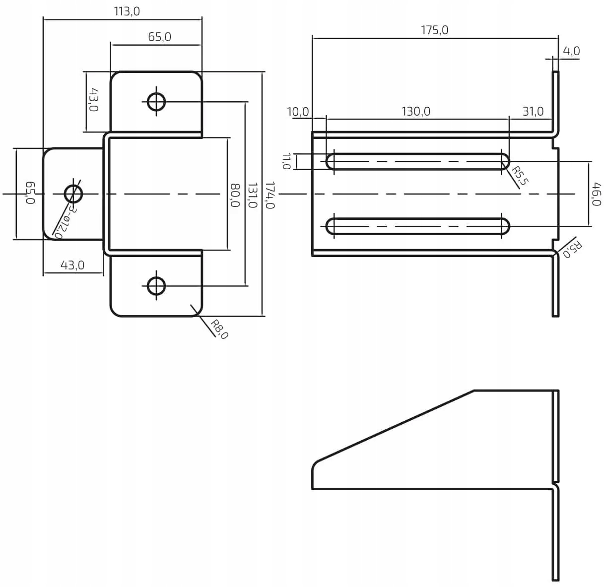 Кріплення кронштейна для верхньої / нижньої дужки 175x113x4 мм Ral 7016