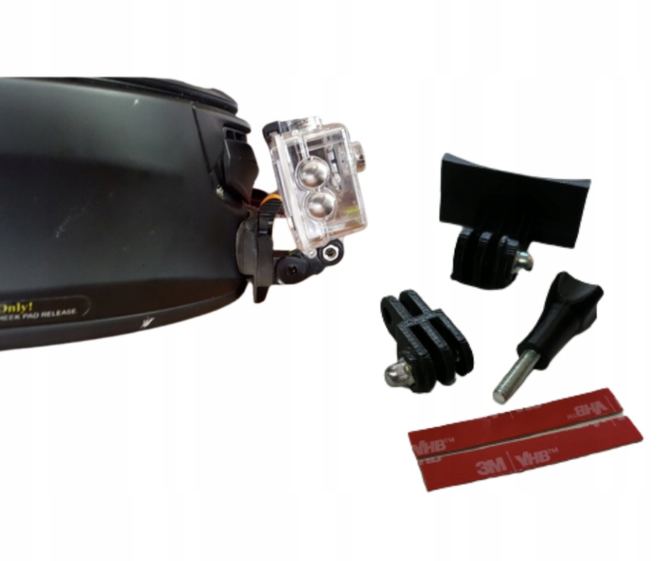 Для найкращої посадки тримача він рекомендовано занурювати частину шолома (без кріплення камери) в киплячу воду максимум на 10 сек. Після цієї операції матеріал стає пластичним - помістіть його на шолом, притисніть і почекайте приблизно 15 секунд, щоб затвердіти. Процедуру можна повторити максимум два рази - тоді матеріал не реагує на тепло!