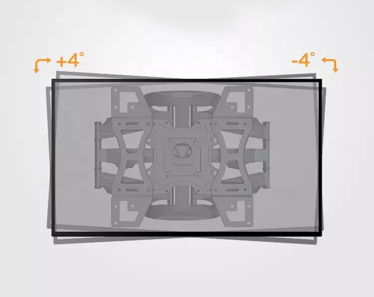 Нахиляючи підвішений телевізор під кутом +/- 4 градуси, є можливість компенсувати неакуратне кріплення тримача до стіни.