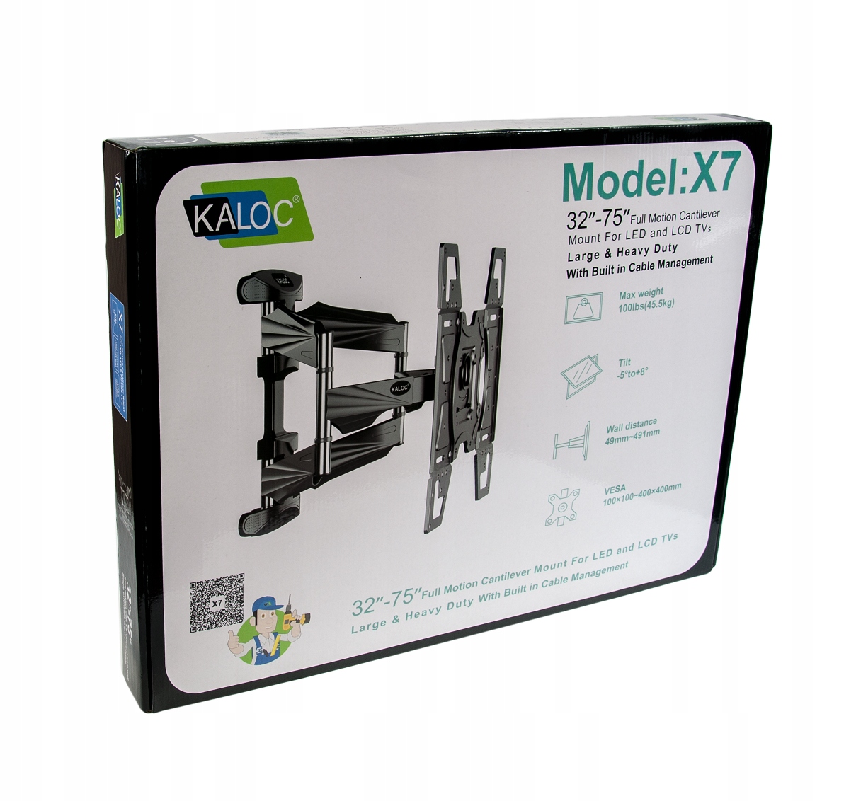 УНІВЕРСАЛЬНЕ НАСТІННЕ КРІПЛЕННЯ ДЛЯ ТВ ПРЕМІУМ ЯКОСТІ ВІД БРЕНДУ KALOC X7 ДЛЯ ТЕЛЕВІЗОРІВ 32-75 ДЮЙМОВ