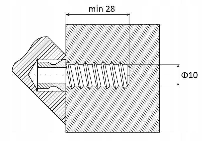 - Гільза пригвинчена до дерева за допомогою шестигранного ключа на 8 мм
