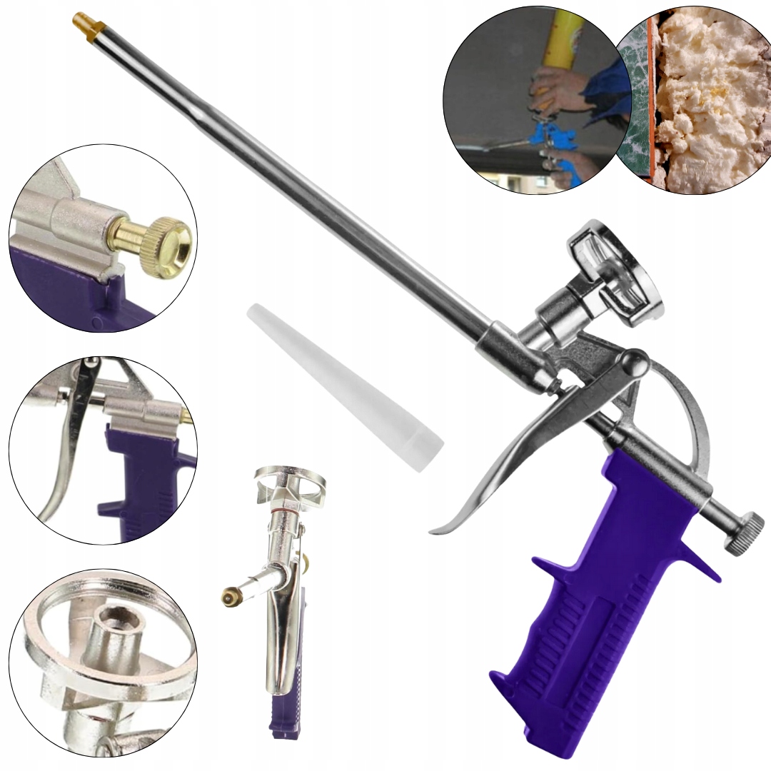 Ми представляємо високоякісний кріпильний пістолет у привабливому фіолетовому кольорі, призначений для точного та зручного застосування піни в важких для досягнення місця. Ідеально підходить як для любителів, так і для професіоналів, які цінують ефективність та комфорт роботи.