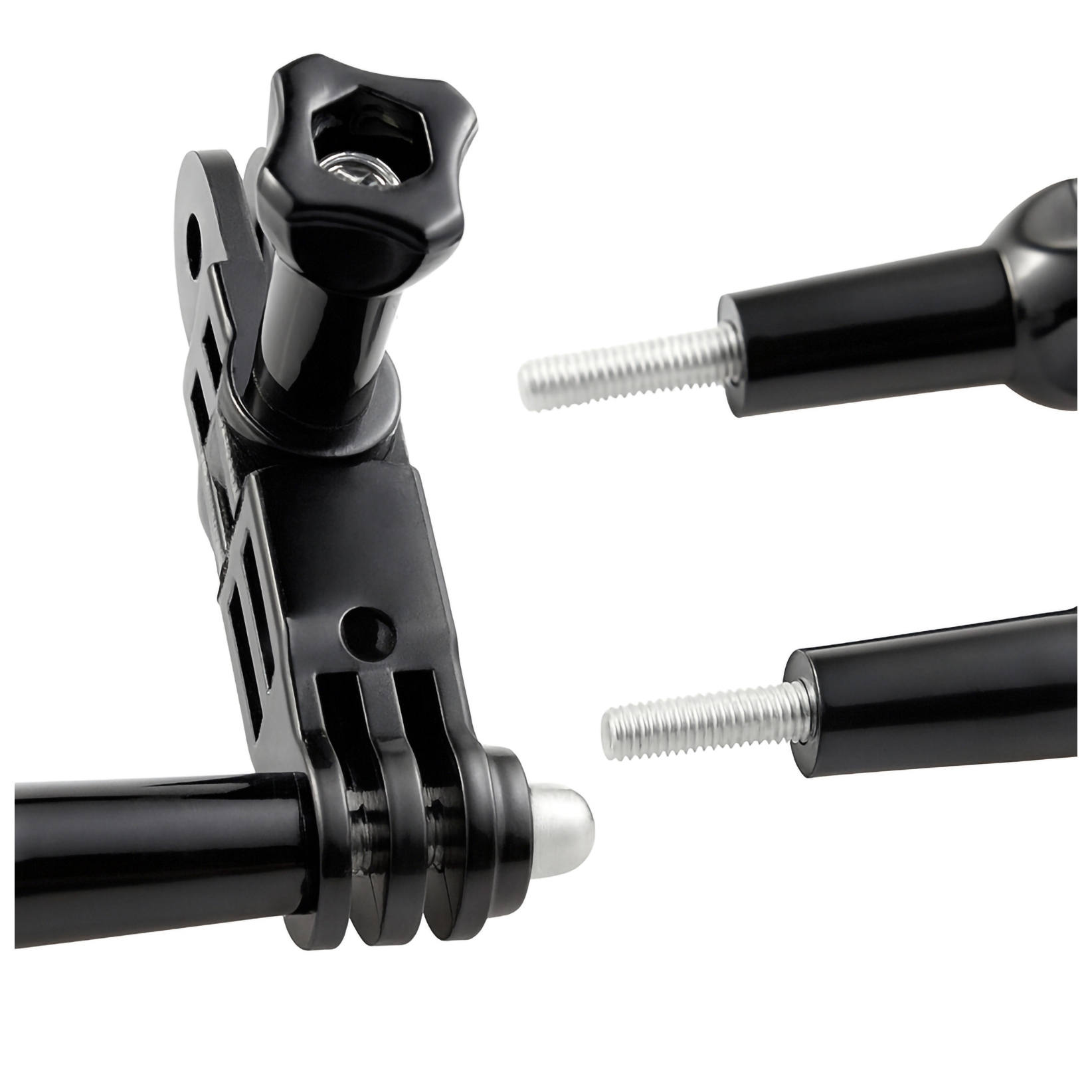 3D-шарнірний адаптер із системним кріпленням типу GoPro складається з двох рук різної довжини.
