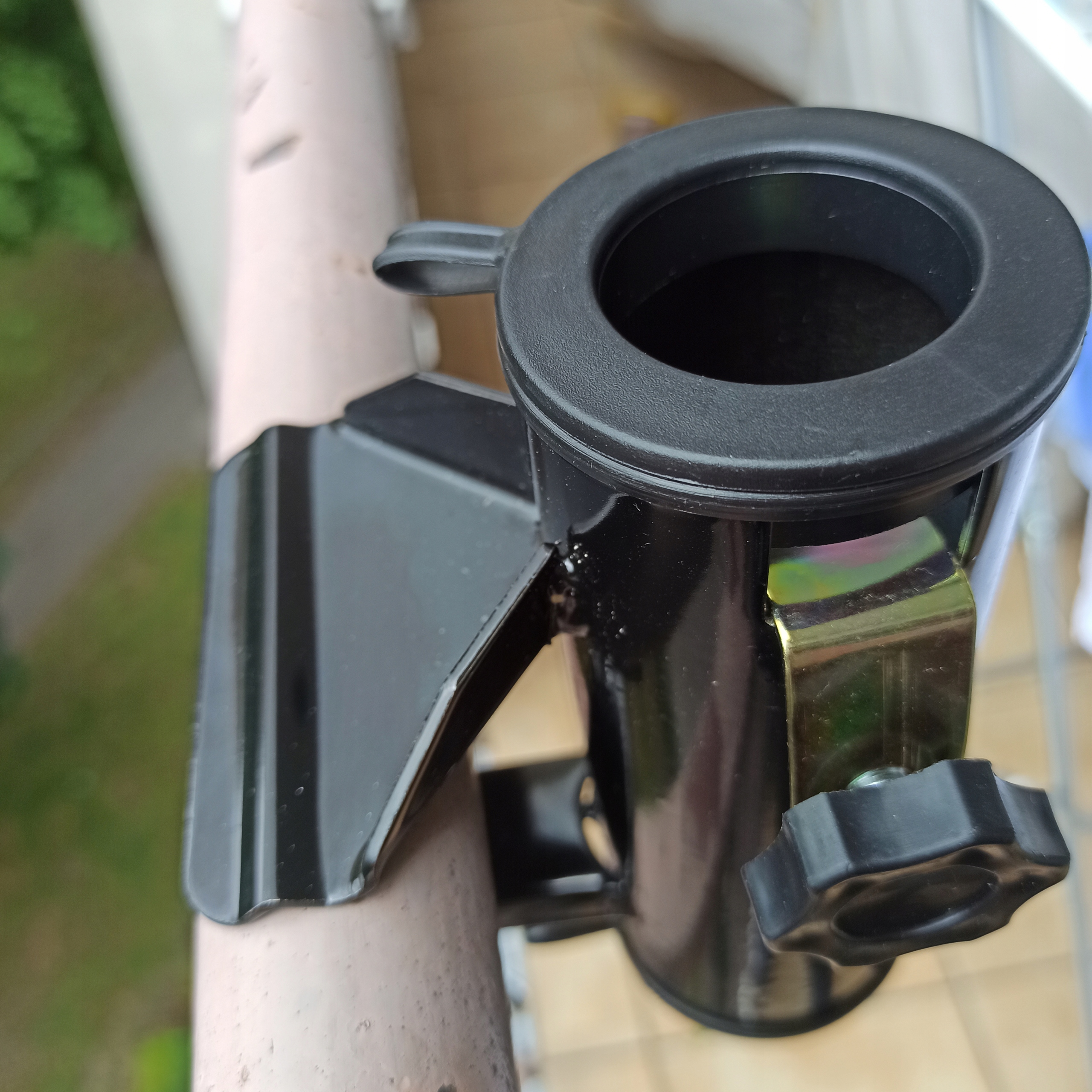 Основа - кріплення дозволяє зручно встановити парасольку на труби різного діаметру та на різних типах балюстрад. Це дозволяє розмістити його на терасі, балконі або в інших місцях. Вам більше не потрібна спеціальна основа для кріплення парасольки, просто прикрутіть сталеву основу. Крім того, ви можете розмістити, наприклад, прапор у тримачі, щоб підкреслити будь-яке свято.